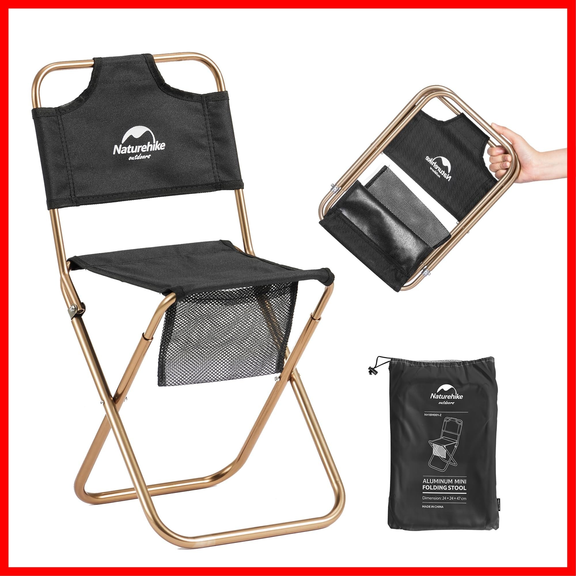 Naturehike直営店 アウトドアチェア 折りたたみ椅子 背もたれ 超軽量 コンパクト 耐荷重75kg ミニ キャンプ椅子 イス 収納バッグ付 お釣り 登山 ピクニック ハイキング ビーチ バーベキュー ブラック