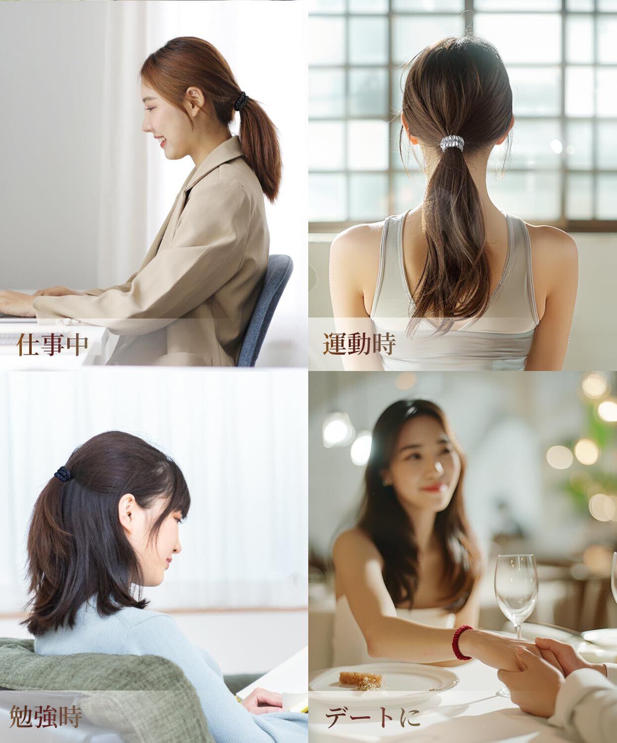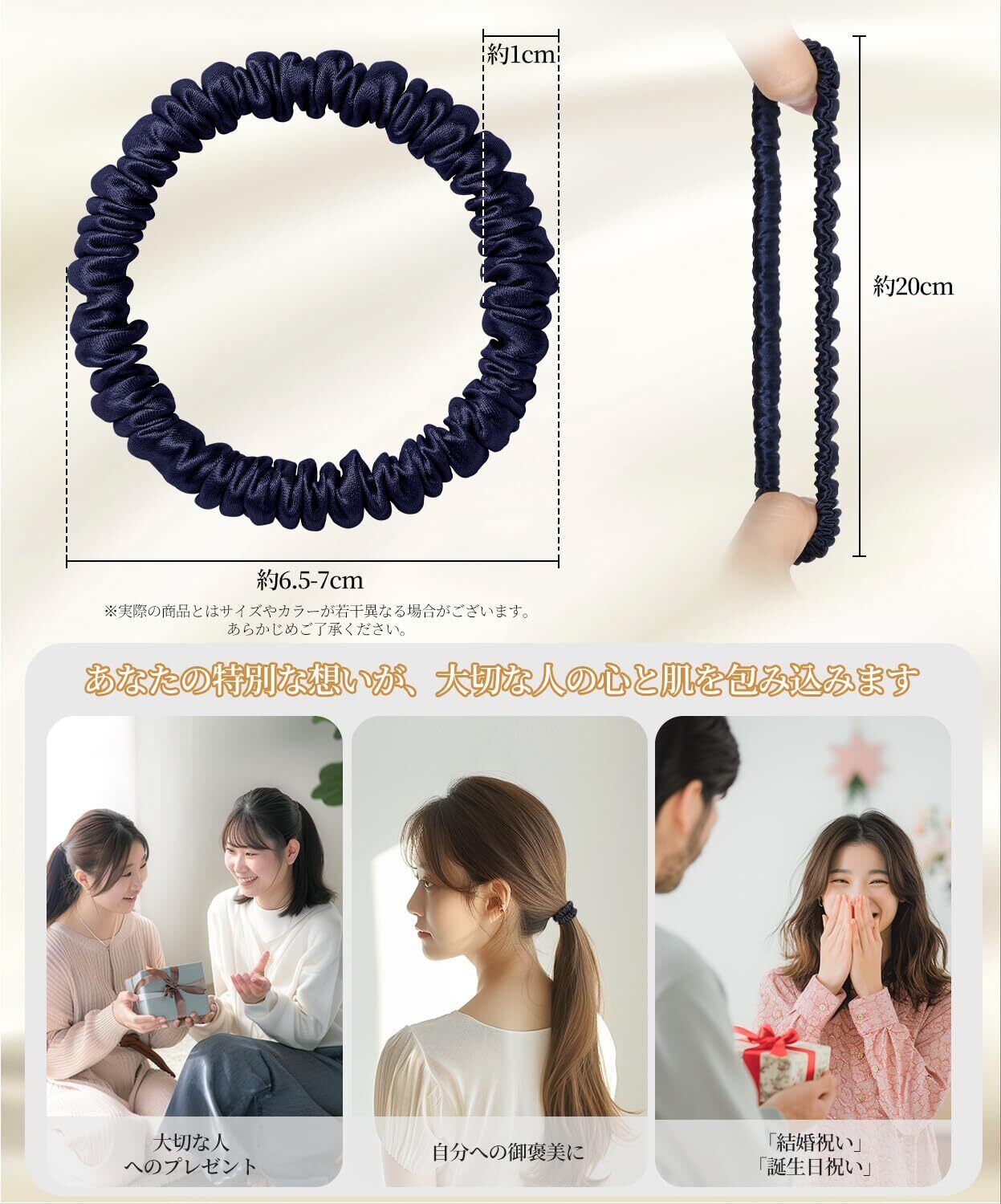 【6Aランクの最高級】:この髪ゴムは6Aランクの最高級silkを使用し、髪をまとめても跡が残りにくく、お出かけ前の準備や仕事中にちょっと髪をまとめたいときに便利です。 髪を結うだけで上質感を演出することができ、いつものまとめ髪も華やかな仕上がりになります。サンプルテストもご用意しており、安心してお買い求めいただけます。