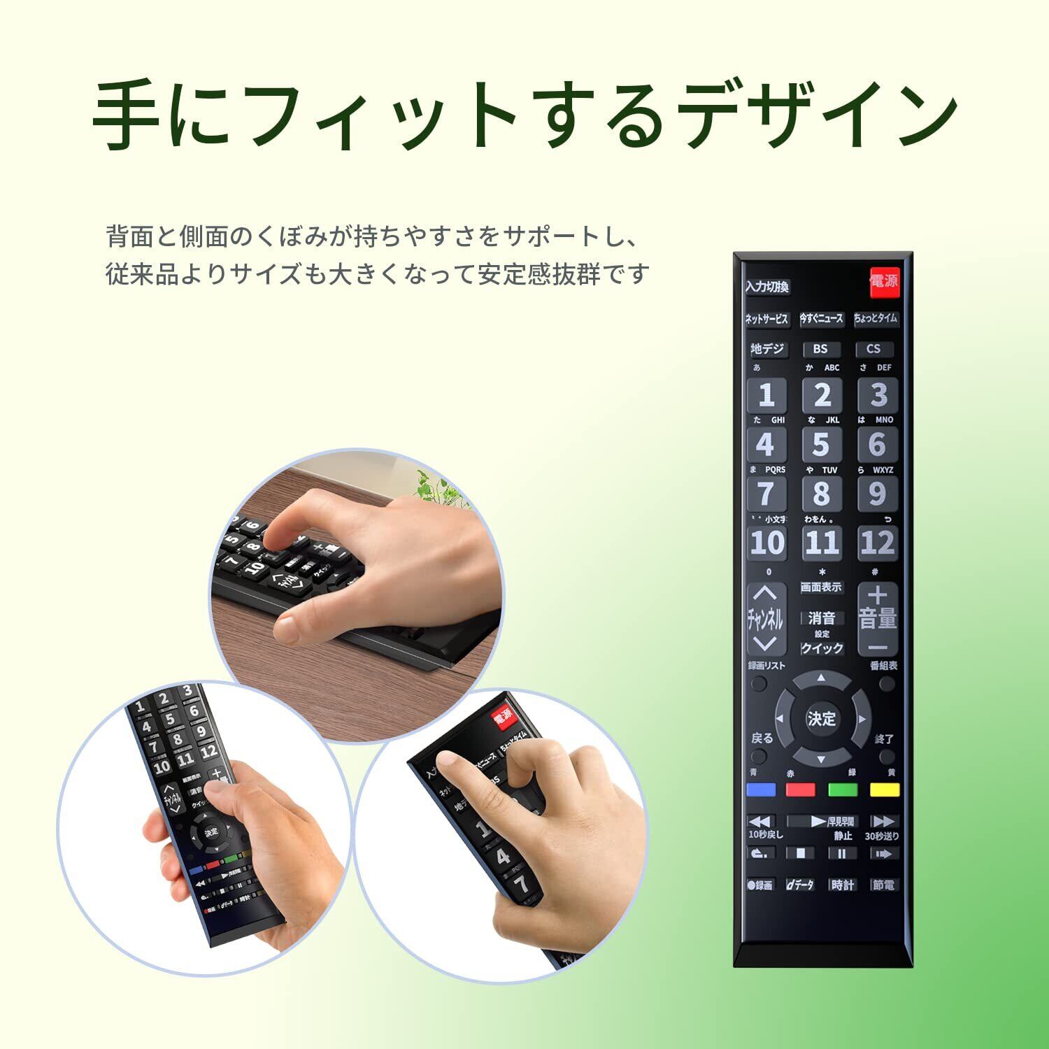 【かんたん】東芝 製テレビ レグザに設定済みで、登録作業をすることなくそのまま使えるかんたんTV用リモコンです。※新品電池と使用済み電池の混用しないでください。同品種、同一品番(使用期限)の電池をご使用下さい。(※機種によっては一部の機能が操作できない場合があります。)