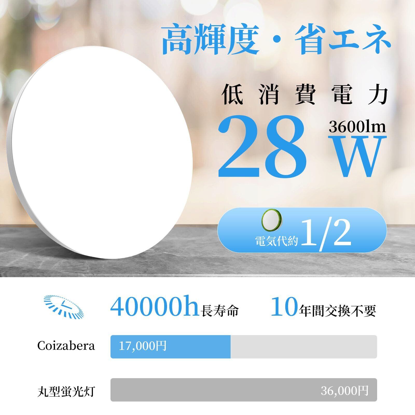 Coizabera LED シーリングライト 6畳 28W 3600lm 2個セット 調光調色 リモコン操作 スマホAPP操作 天井照明器具 電気 蛍光灯 洋室 和室 リビング/キッチン/寝室/洗面所 適用 白枠2個セット