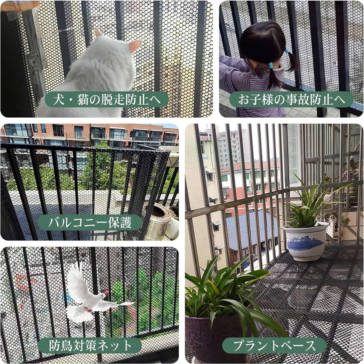 バルコニーやベランダにはもちろん、野菜や果物などの防鳥対策ネットとして、愛犬愛猫の脱走防止にもご使用頂けます!