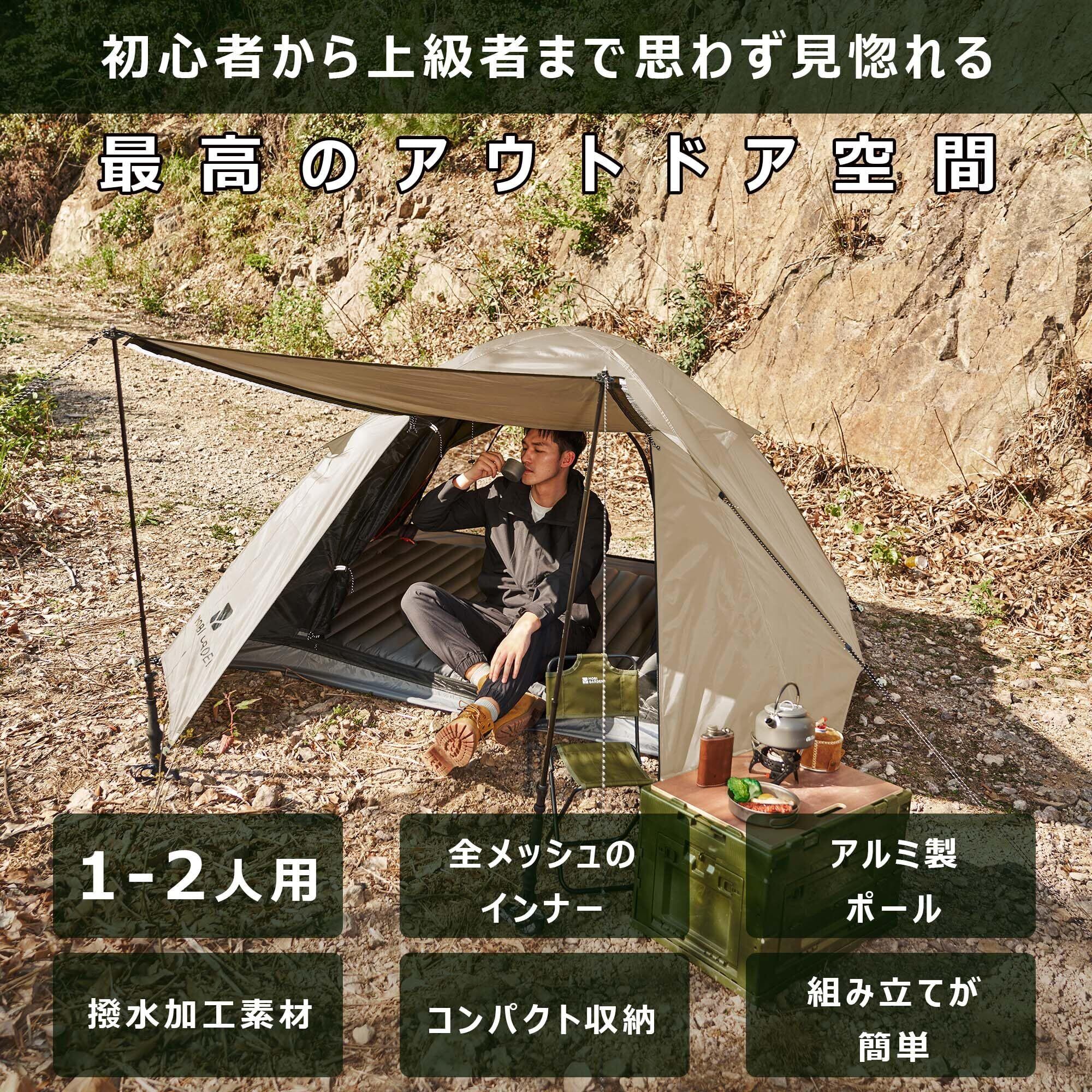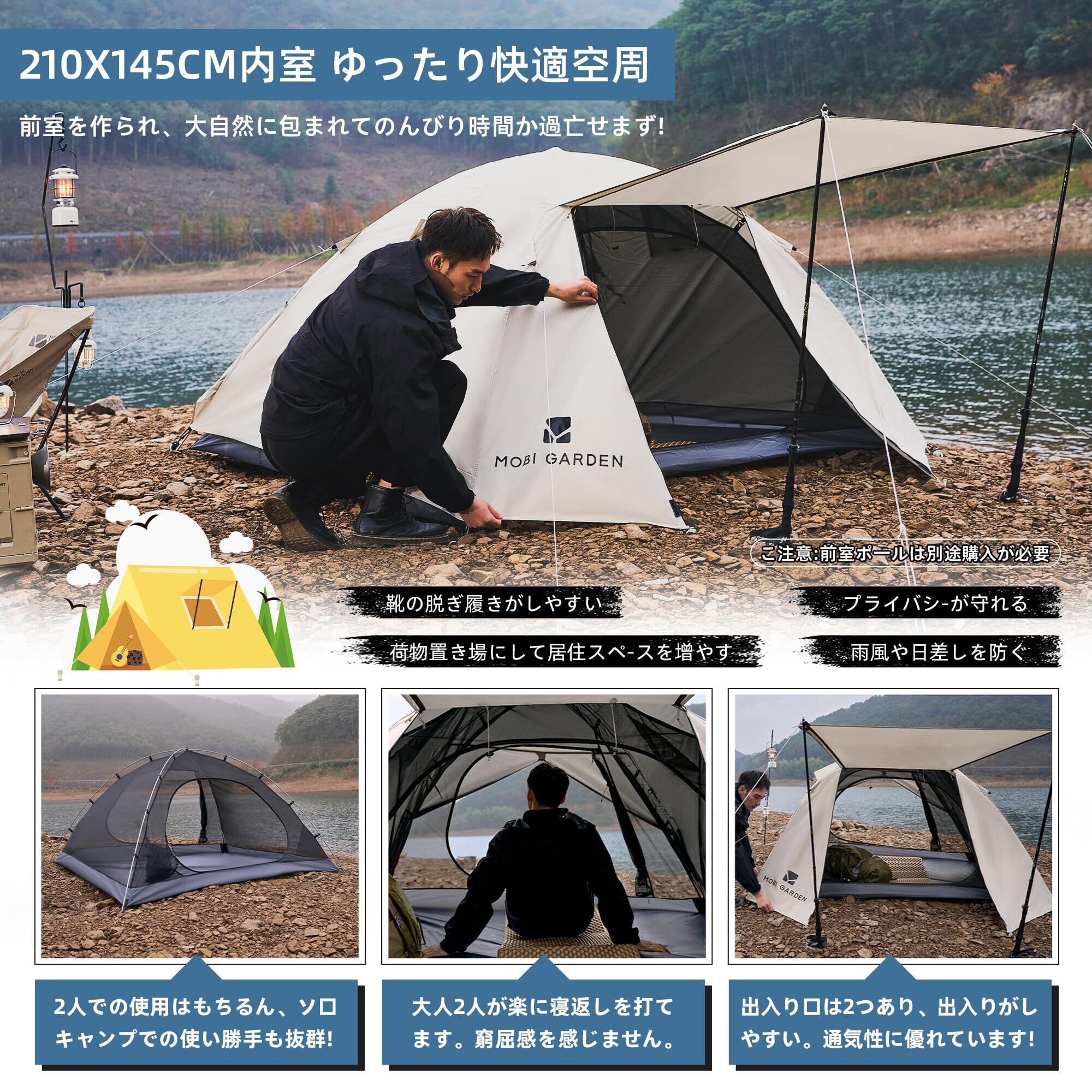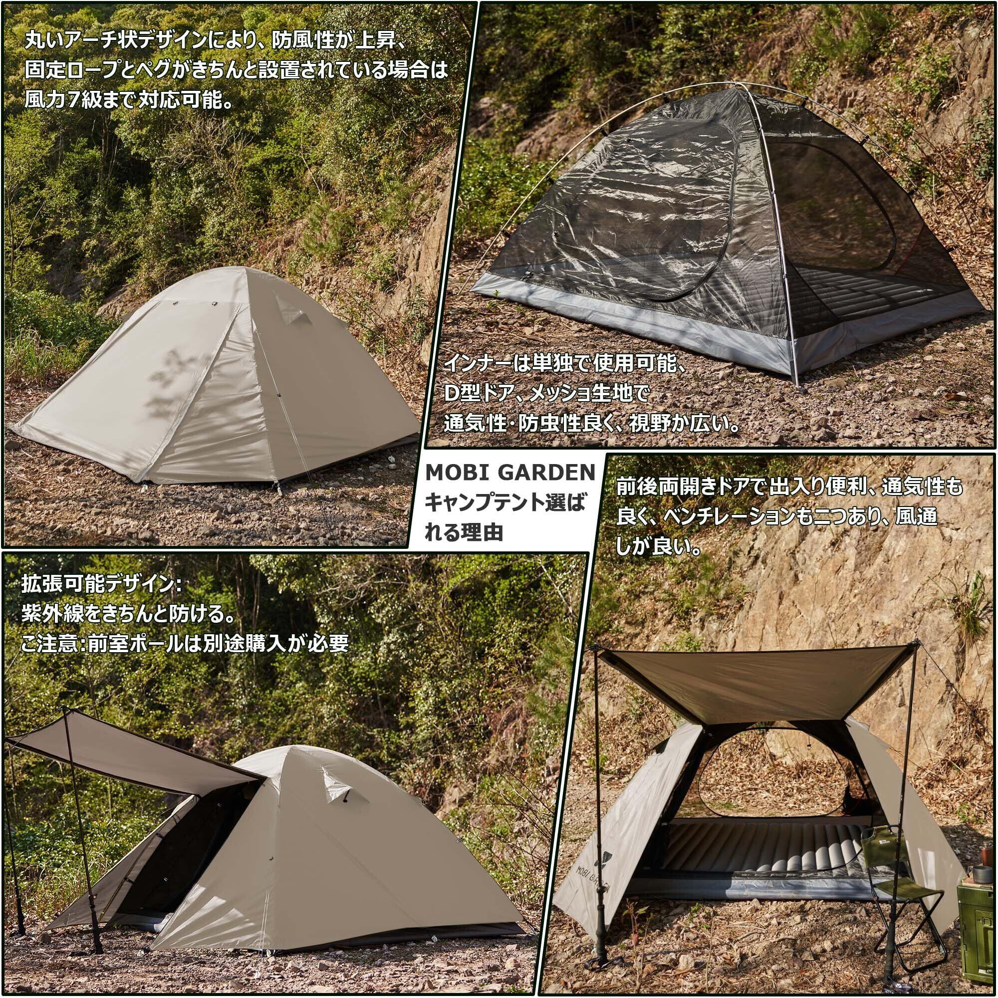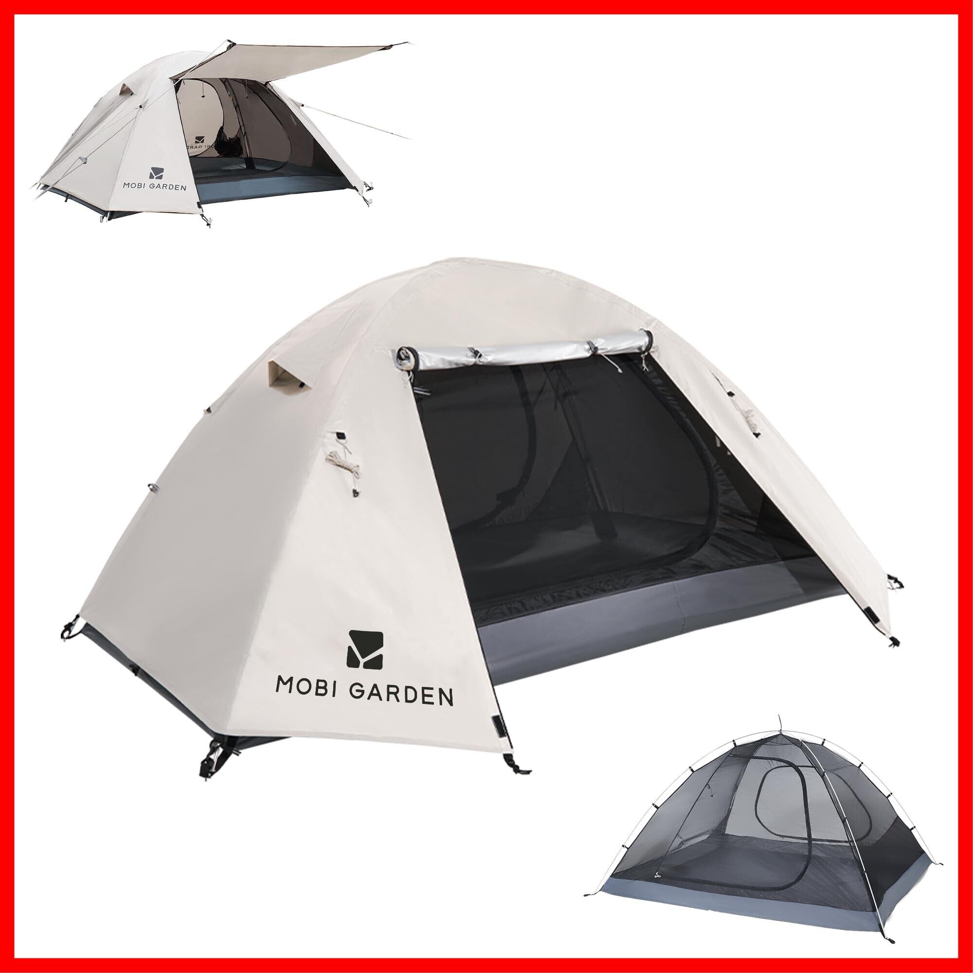 MOBI GARDEN テント ソロテント キャンプテント 1-2人用 二重層 軽量 コンパクト アルミ製ポール 撥水加工素材 UVカット アウトドア 簡単設営 収納バッグ付き キャンピング 登山