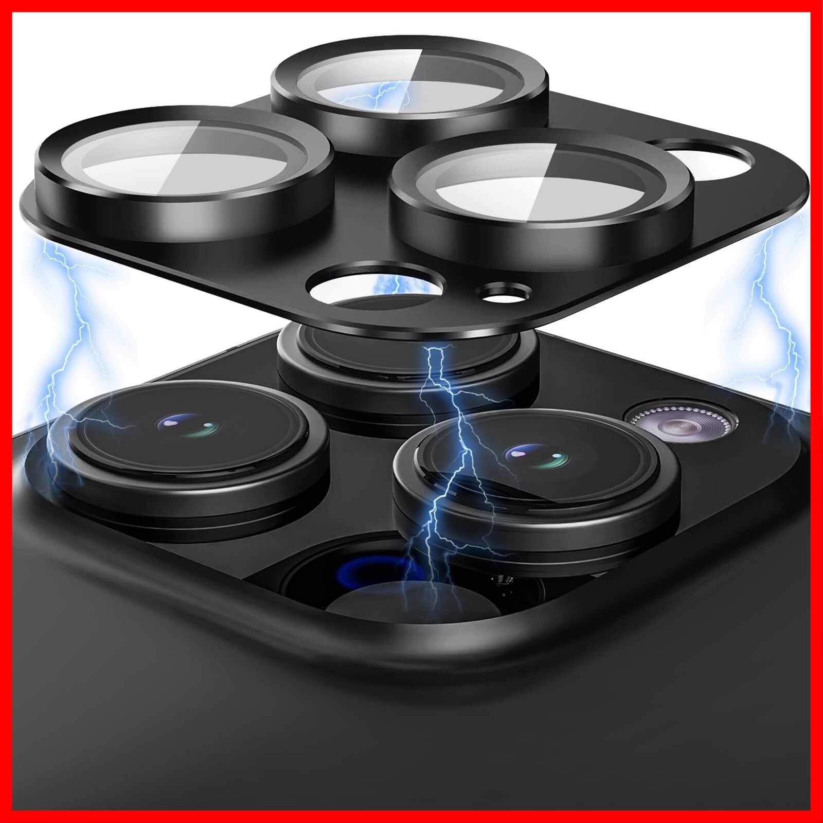 【超強粘着力・貼りやすい!】iphone16pro/15pro/14pro用カメラ保護カバー フィルムの粘着面は高品質AB接着剤を使って、自動吸着、気泡防止、超強粘着力を持って、剥がれることほとんどない。レンズカバーが1:1精密加工でレンズの位置を合わせて上から置くだけで一発で簡単に貼り付けます。精確なサイズによって、ほとんどのケースと組み合わせられます。(カメラ穴あきタイプのケースが最適)