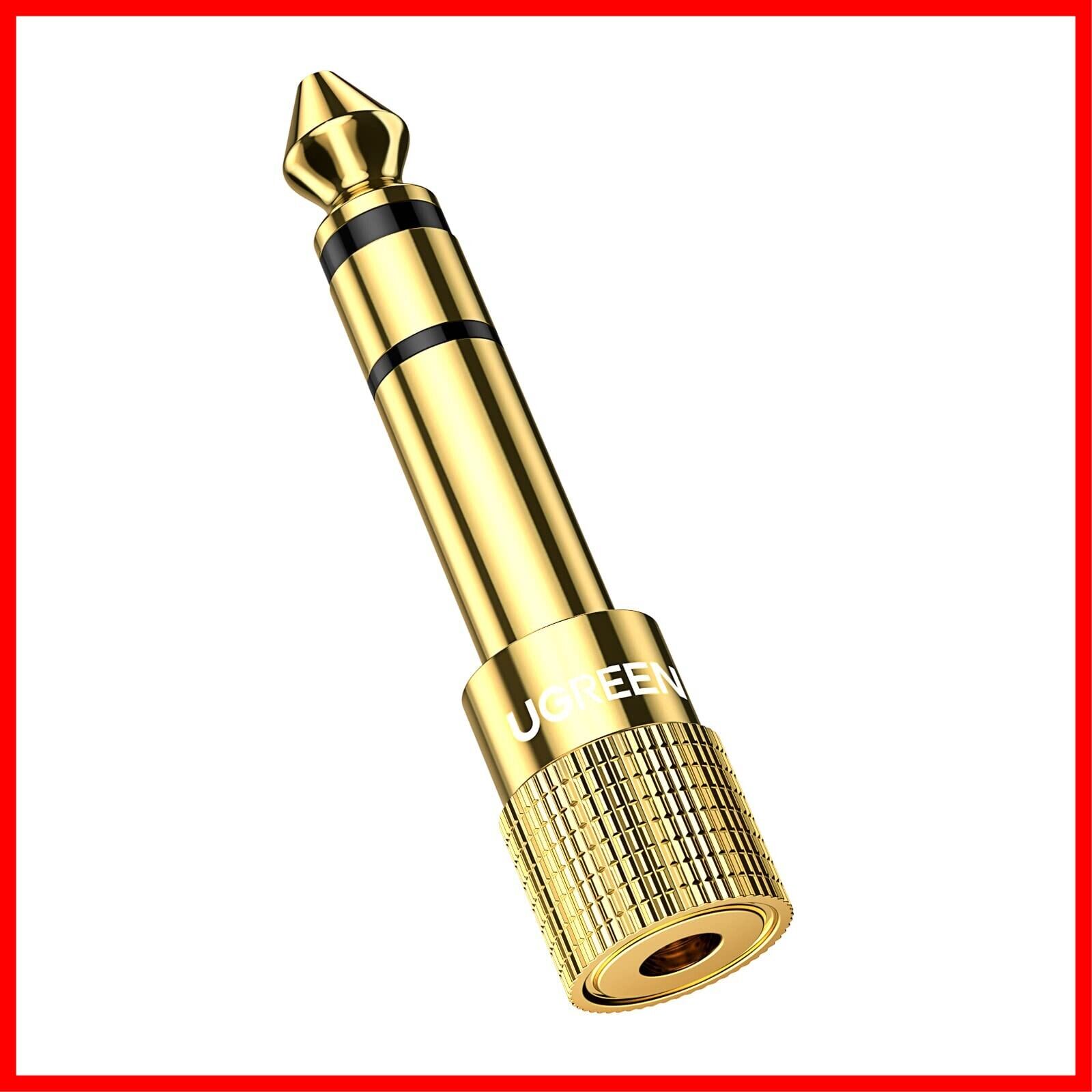 UGREEN 3.5mm ⇒ 6.35mm 変換アダプタ ステレオミニプラグ(メス)⇒ステレオ標準プラグ(オス) 24K金メッキコネクタ 3.5mm to 6.35mm 変換プラグ ヘッドホン/アンプ/電子ピアノ/イヤホン/ミキサー/プレーヤーなどに対応 (1個)