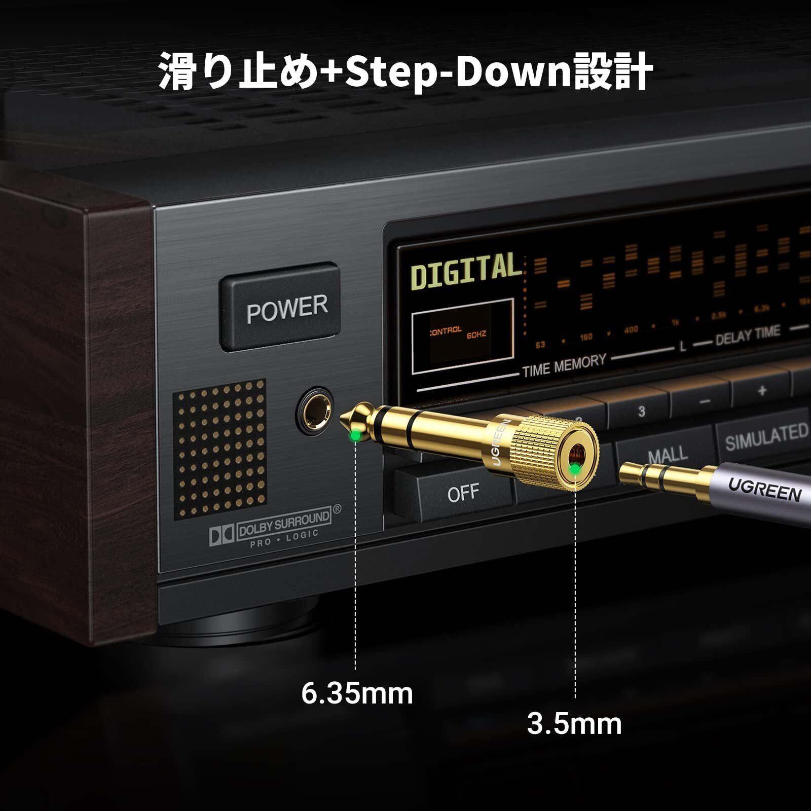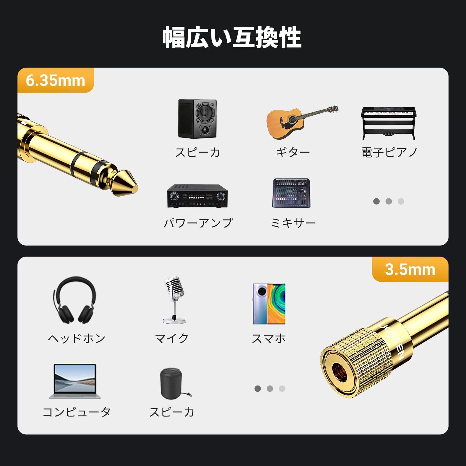 UGREEN 3.5mm to 6.35mm 変換プラグとはステレオ標準プラグとステレオミニジャックへの変換実現ものです。