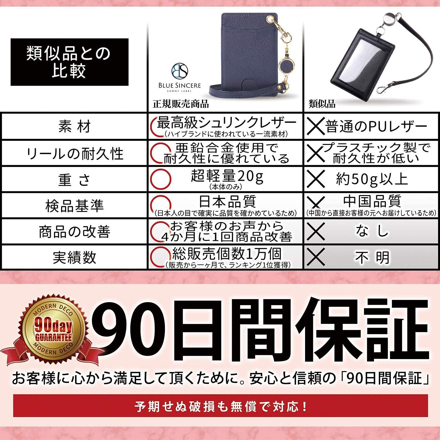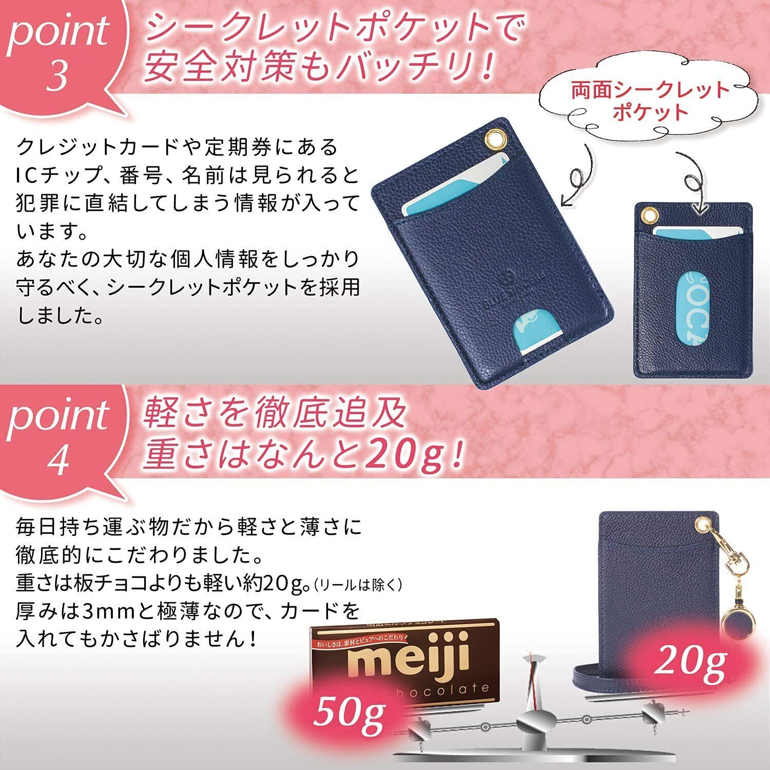 [BLUE SINCERE] ブルーシンシア パスケース リール付き 本革 定期入れ レディース シュリンクレザー 2枚 両面 伸びる ストラップ付き icカードケース / PC3 | hananoki