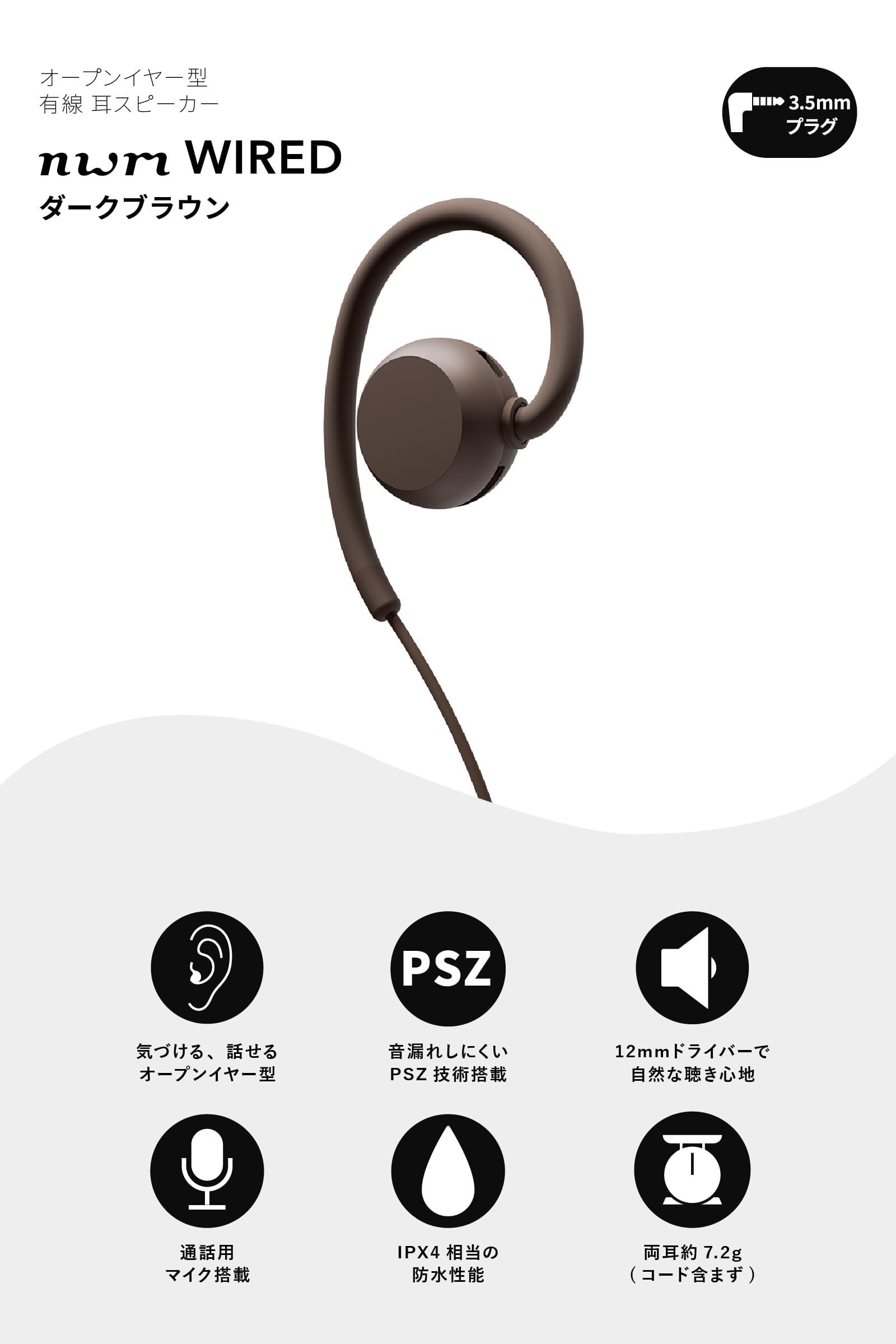 nwm (ヌーム) オープンイヤー型 有線 (3.5mm) 耳スピーカー nwm WIRED | 耳をふさがない イヤホン 耳スピ NTT sonority ダークブラウン