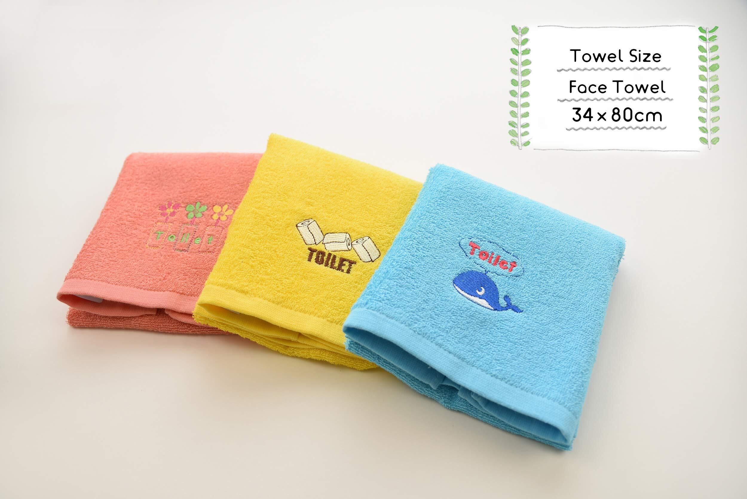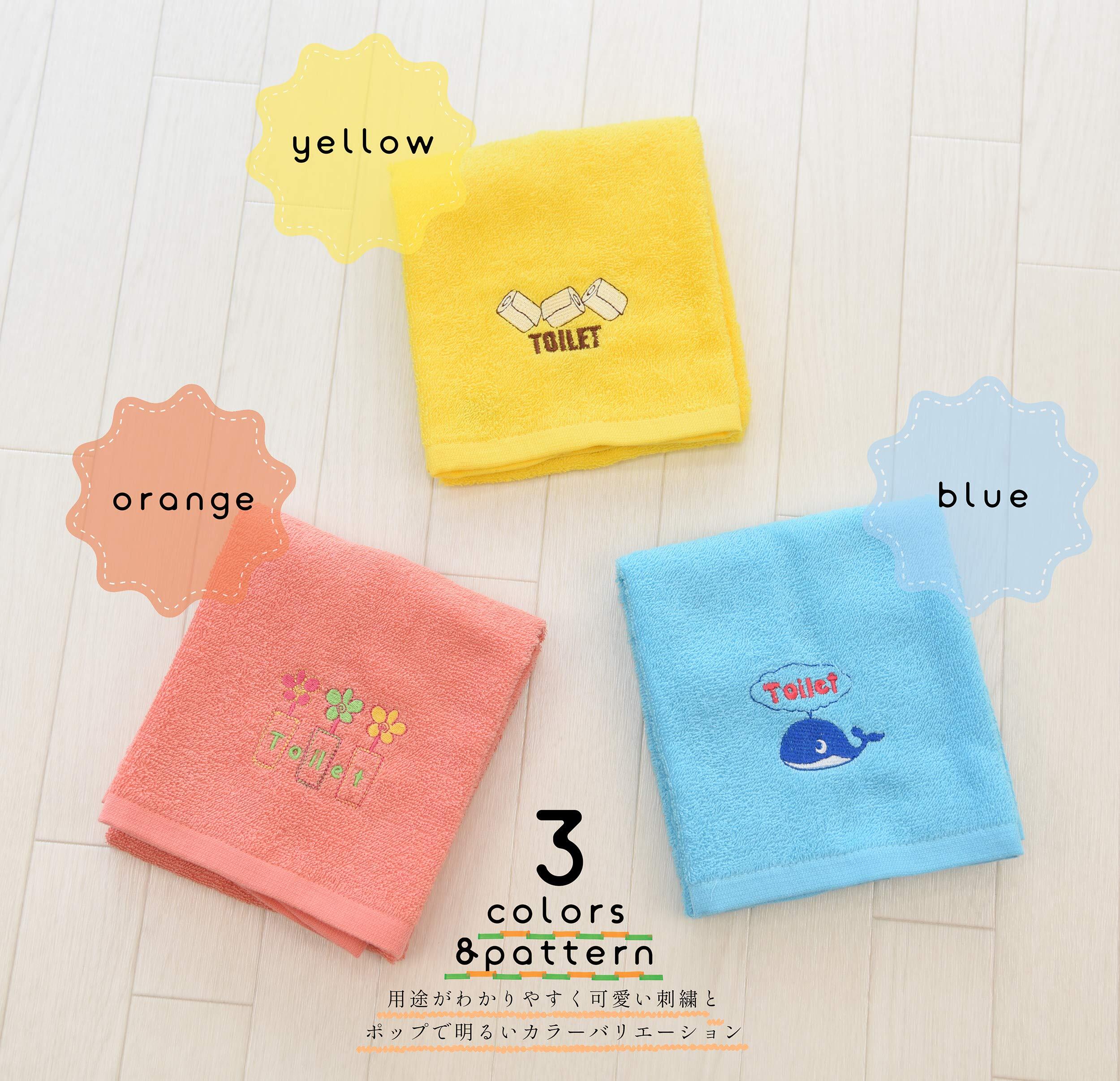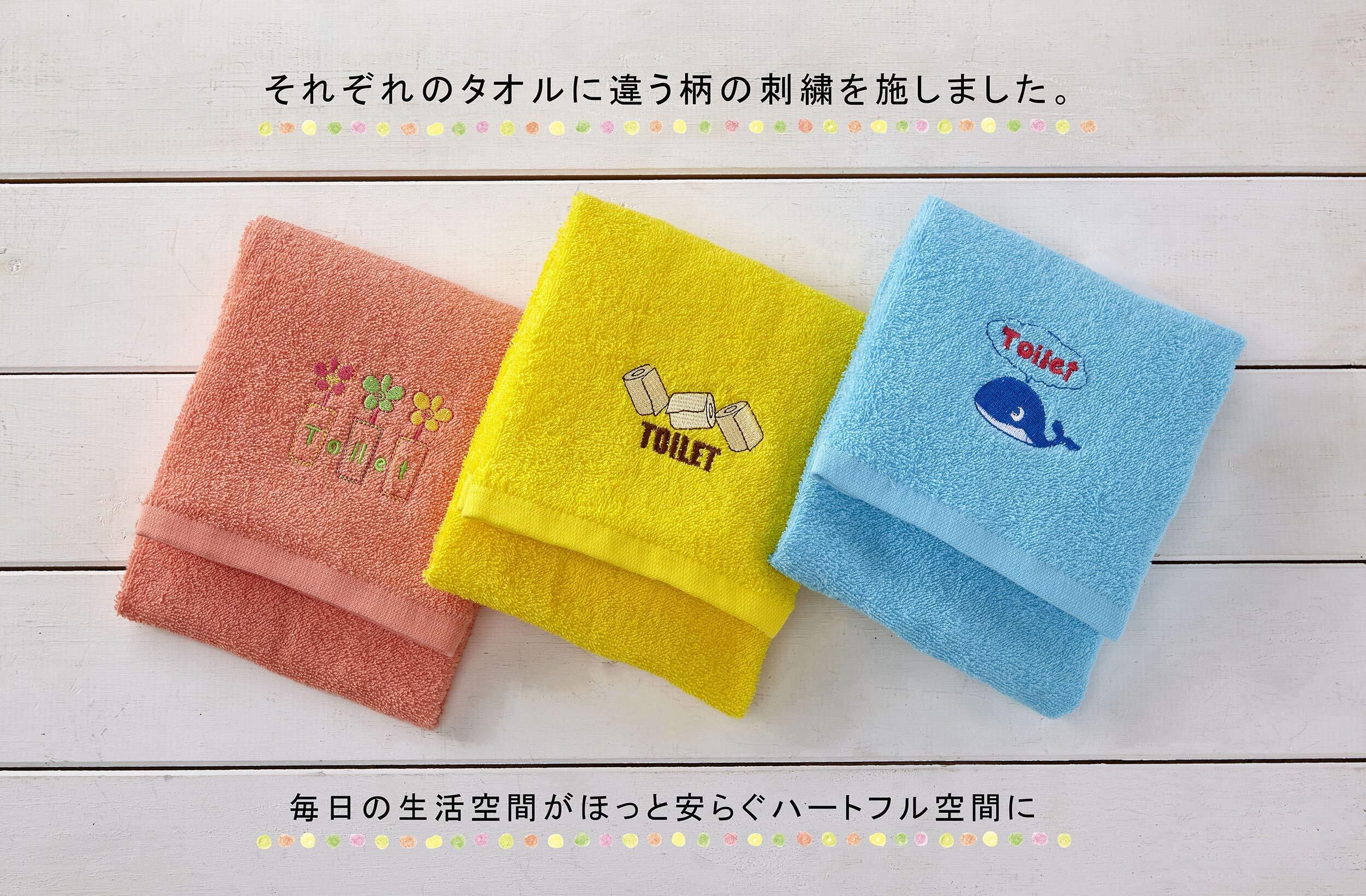【シーンにあわせて使い分け】トイレスペースで大活躍! 生活シーンで選べるフェイスタオル。刺繍を見ればどこで使うタオルかすぐ見分けがつきます。