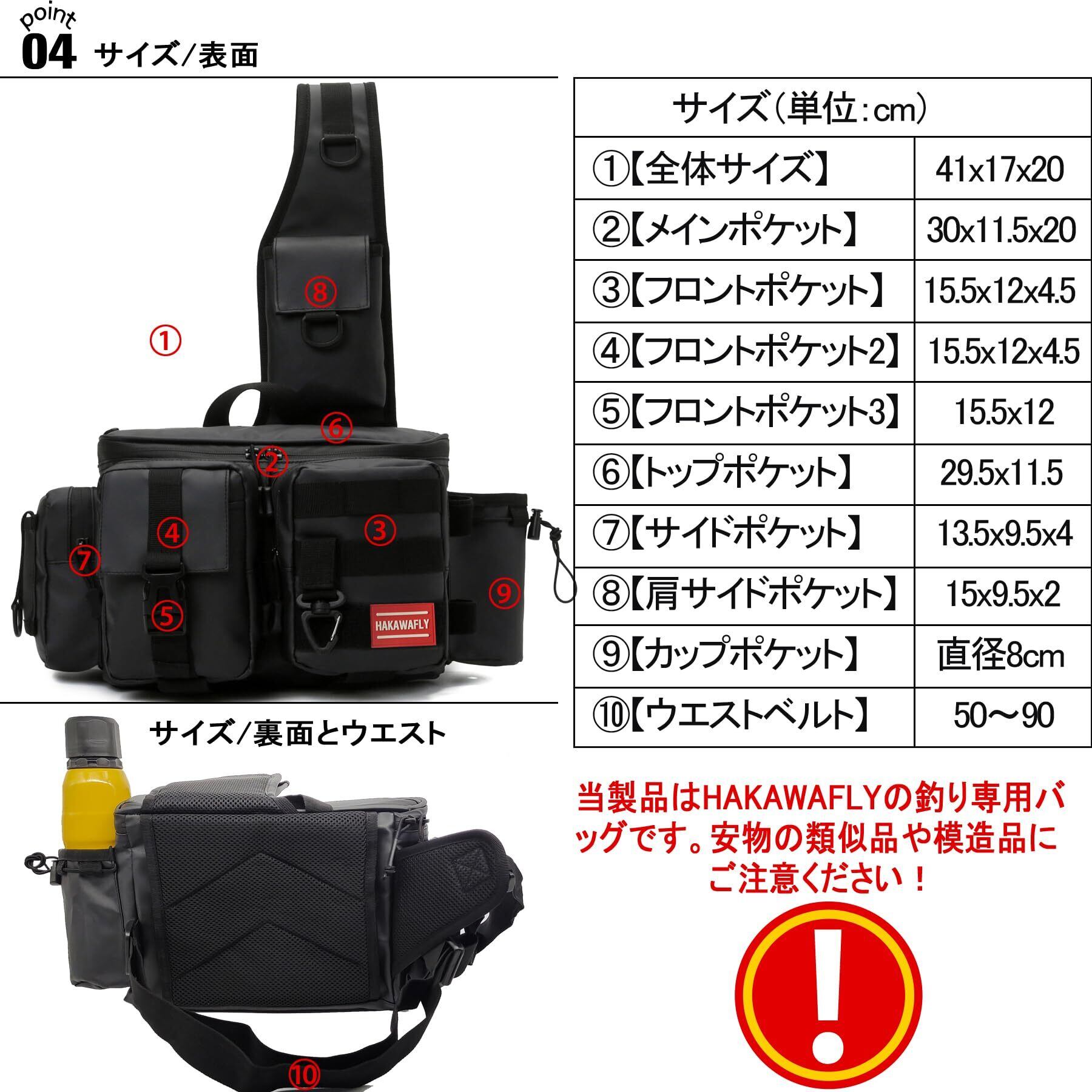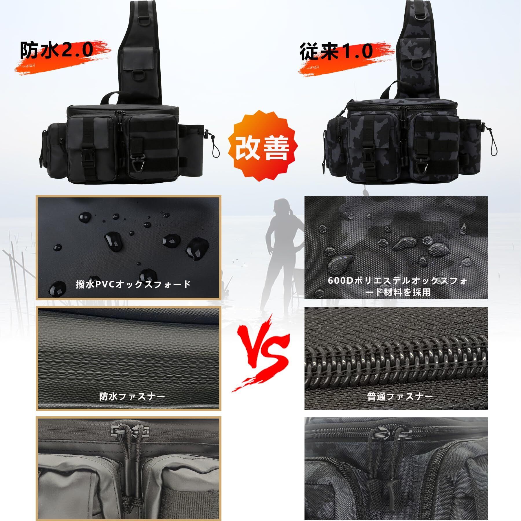 [HAKAWAFLY] フィッシングバッグ 広口 釣りバッグ 5WAY 撥水加工 タックルバッグ 多機能 大容量 ランガンバッグ 防水 アウトドア ウエスト 釣り用 ショルダーバッグ(ブラック2.0) | hananoki
