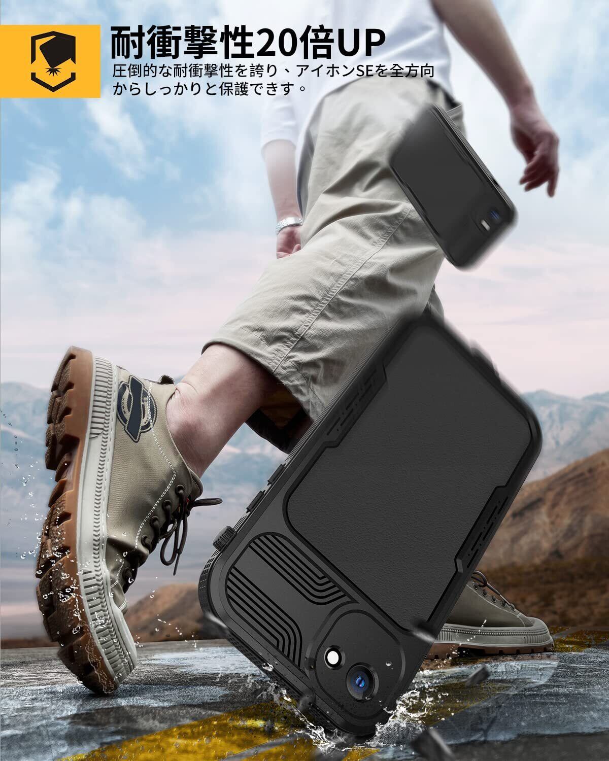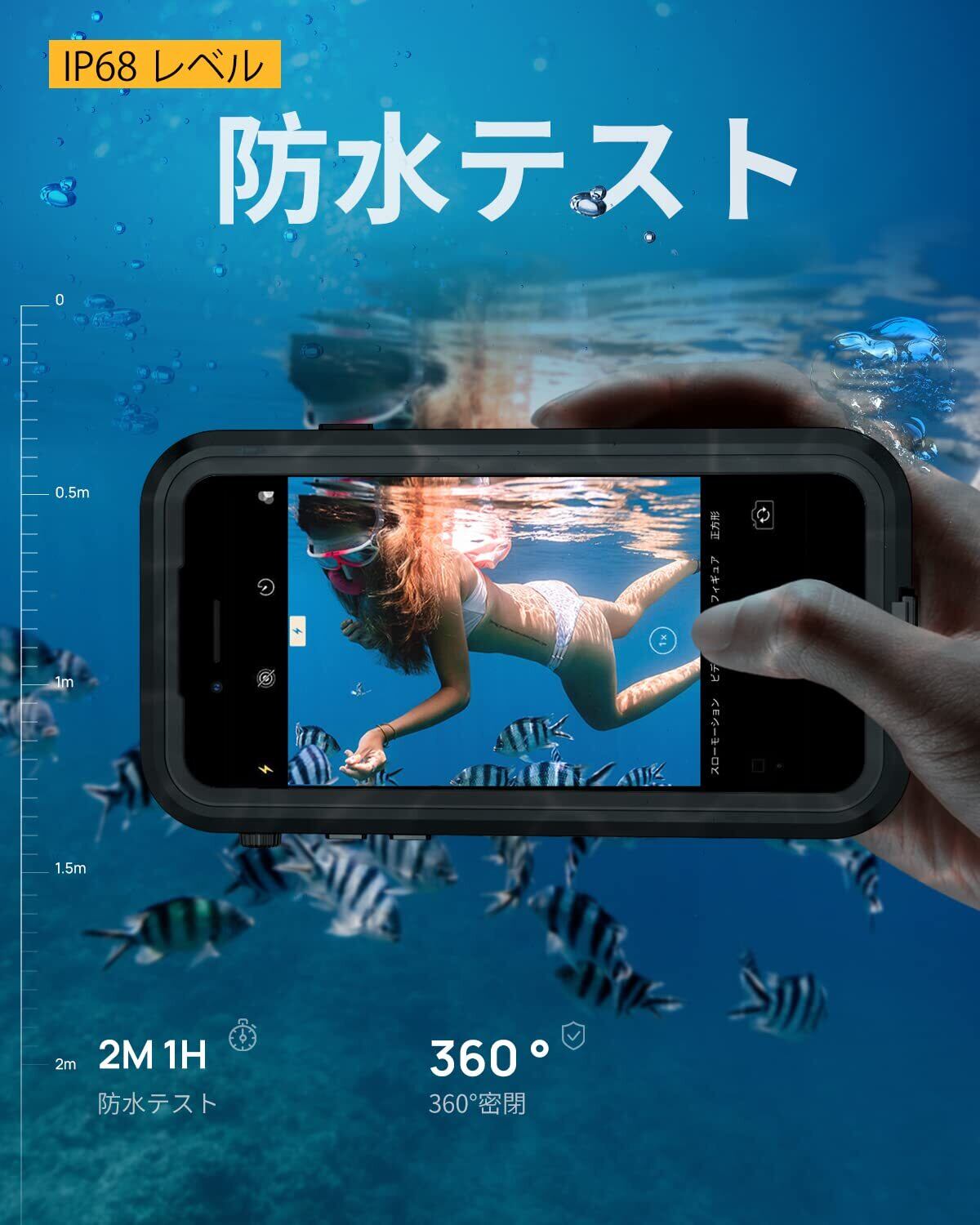 【新デザイ保護レベルUP】防水国際保護等級IP68認定を獲得、 水没しても内部への水の侵入を完全にガードできます。 雨や、雪、泥や砂などから保護できます!ご注意:ご 使用の前に必ず携帯の代わりに一枚の紙をケースに入れて、iPhone SE 2022(5G)/ SE 2 / 7 / 8 用防水ケースは最大水深2mで30分間の防水が可能試験を行 ってください。