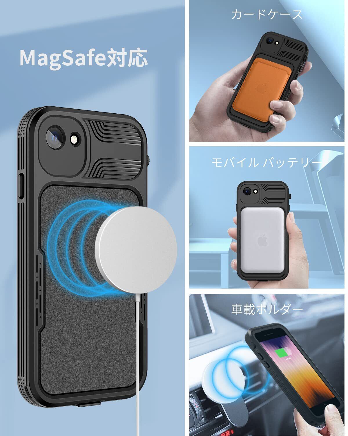 Lanhiem iPhone SE3 ケース iPhone 2022 第3世代 防水ケース iPhone SE2/8/7 ケース(4.7インチ) 完全防水 IP68米軍規格 指紋認証 タッチ可 耐衝撃 滑り止め 防塵 防雪 水中撮影 超軽量 薄型 全面保護カバー ストラップホール付き MagSafe対応アイフォン7 / 8 / SE 2/SE 3 防水ケース ブラック