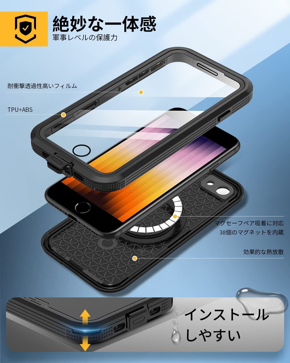 Lanhiem iPhone SE3 ケース iPhone 2022 第3世代 防水ケース iPhone SE2/8/7 ケース(4.7インチ) 完全防水 IP68米軍規格 指紋認証 タッチ可 耐衝撃 滑り止め 防塵 防雪 水中撮影 超軽量 薄型 全面保護カバー ストラップホール付き MagSafe対応アイフォン7 / 8 / SE 2/SE 3 防水ケース ブラック | hananoki