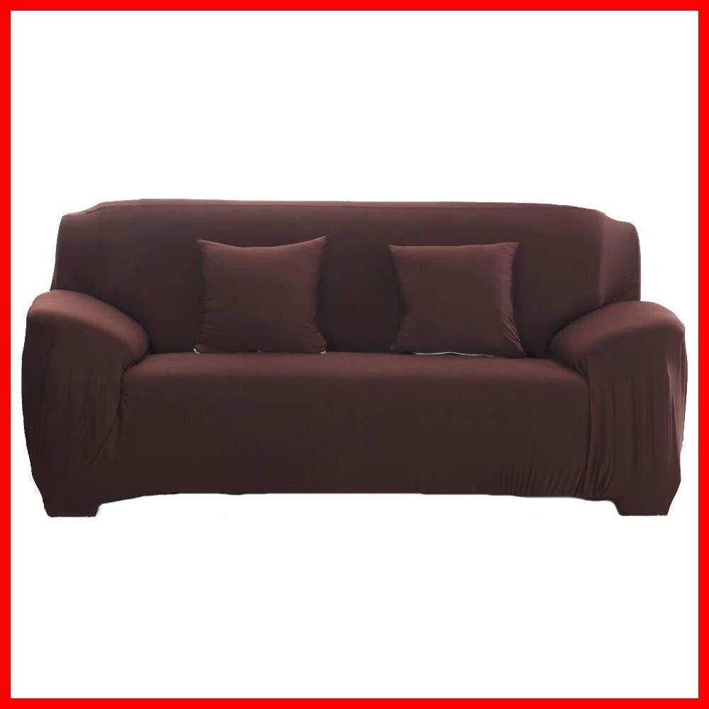 HomeFirst ソファーカバー 2人掛け 肘付き 北欧風 ソファーカバー 無地 縦横弾力 ストレッチ フィットタイプ 滑り止め 伸縮素材 キズ防止 ソファー保護 柔らかい 超便利 洗える A(チョコレート)