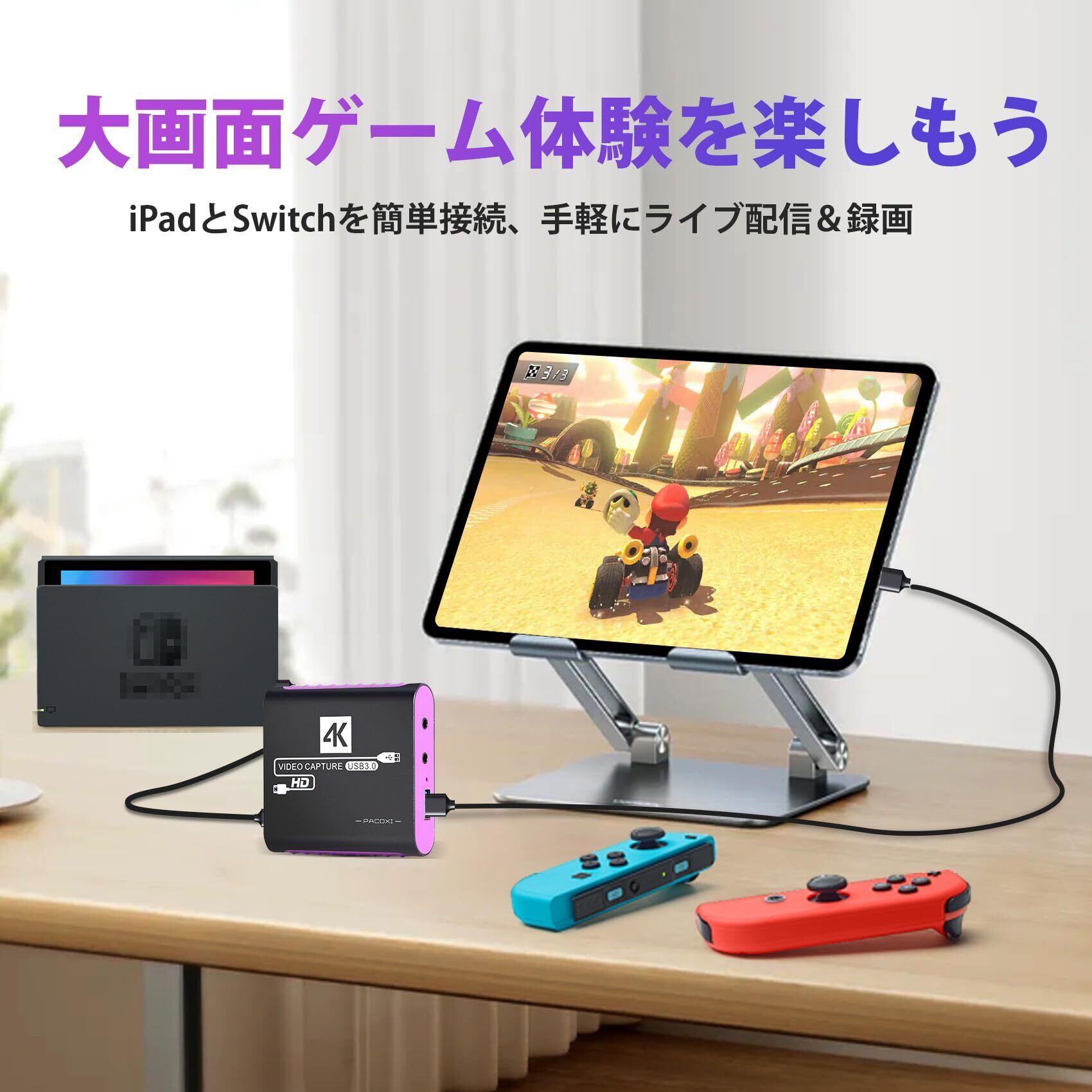 【USB 3.0高速伝送】キャプチャーボード switch対応は、USB 3.0インターフェースを採用し、最大5Gbpsの伝送速度をサポート。録画や配信中の遅延を防ぎ、クリアな画質を実現します。