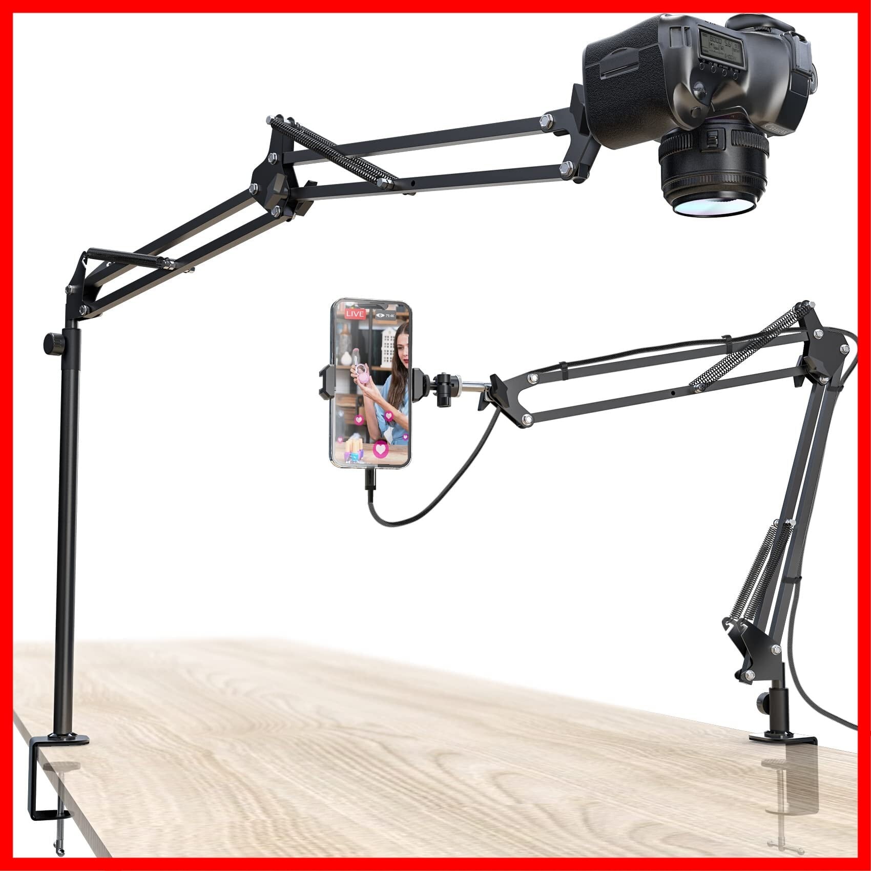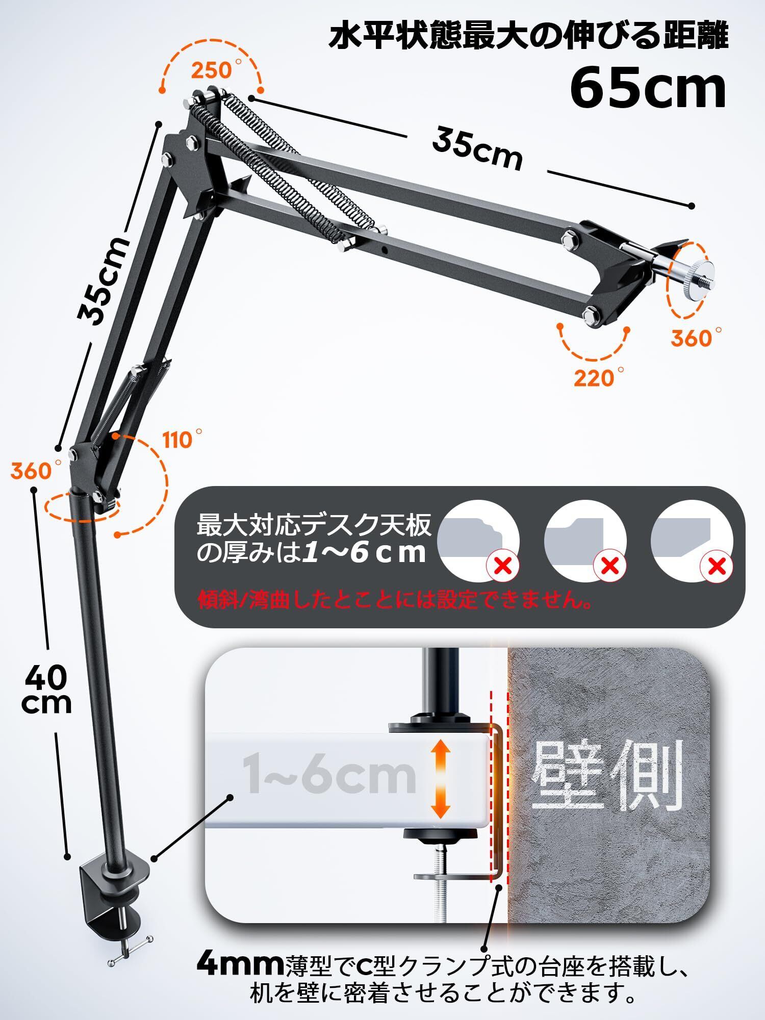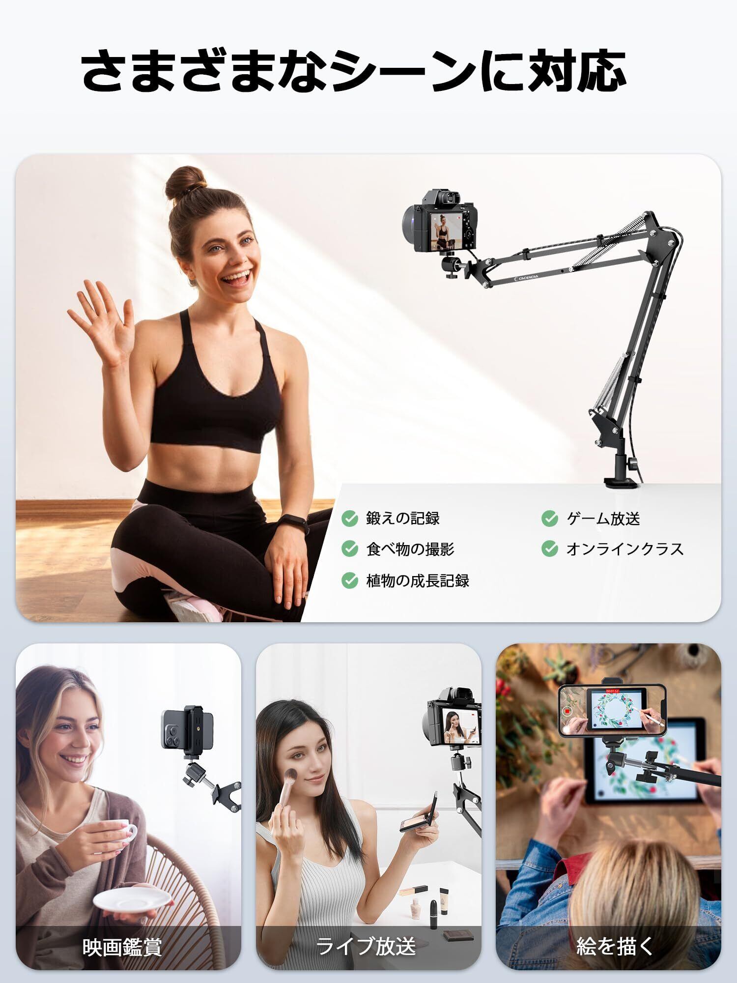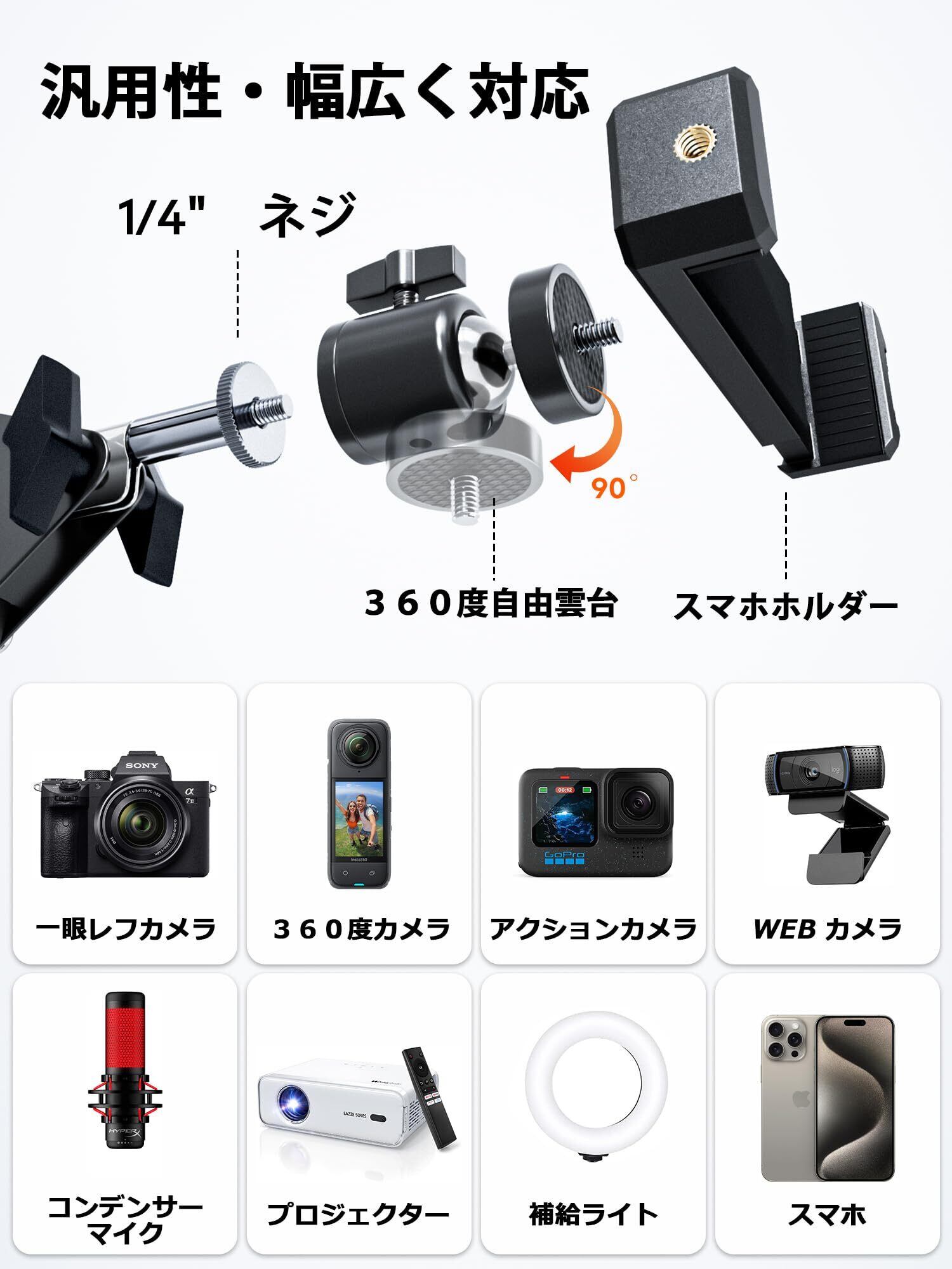 【限定ブランド】カメラアーム カメラスタンド アーム 俯瞰撮影 スマホスタンド 手元撮影 webカメラアーム 360度回転 延長アーム 卓上デスク クランプ式 1/4ネジ・スマホホルダー付き 自由雲台 ウェブカメラスタンド 高くなる改良型 料理/絵画/手芸/授業/美容化粧/LIVE生放送/物撮り/web会議 YouTube Tiktok 動画撮影に適用