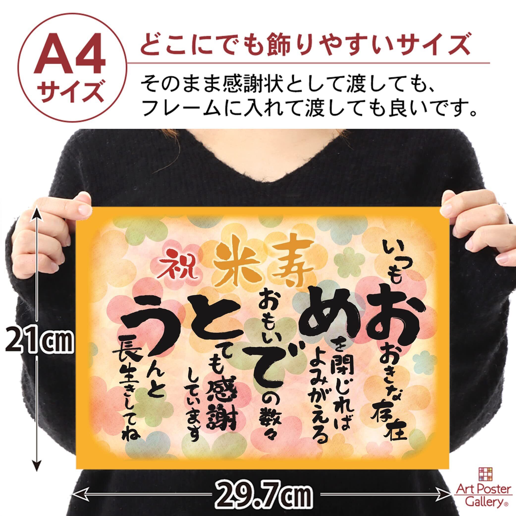 お祝い 誕生日 米寿 おめでとう A4サイズ (お父さん お母さん おじいちゃん おばあちゃん 祖父 祖母 親) メッセージカード ポエム ギフト 感謝状 表彰状 プレゼント 記念日 パーティー 88歳