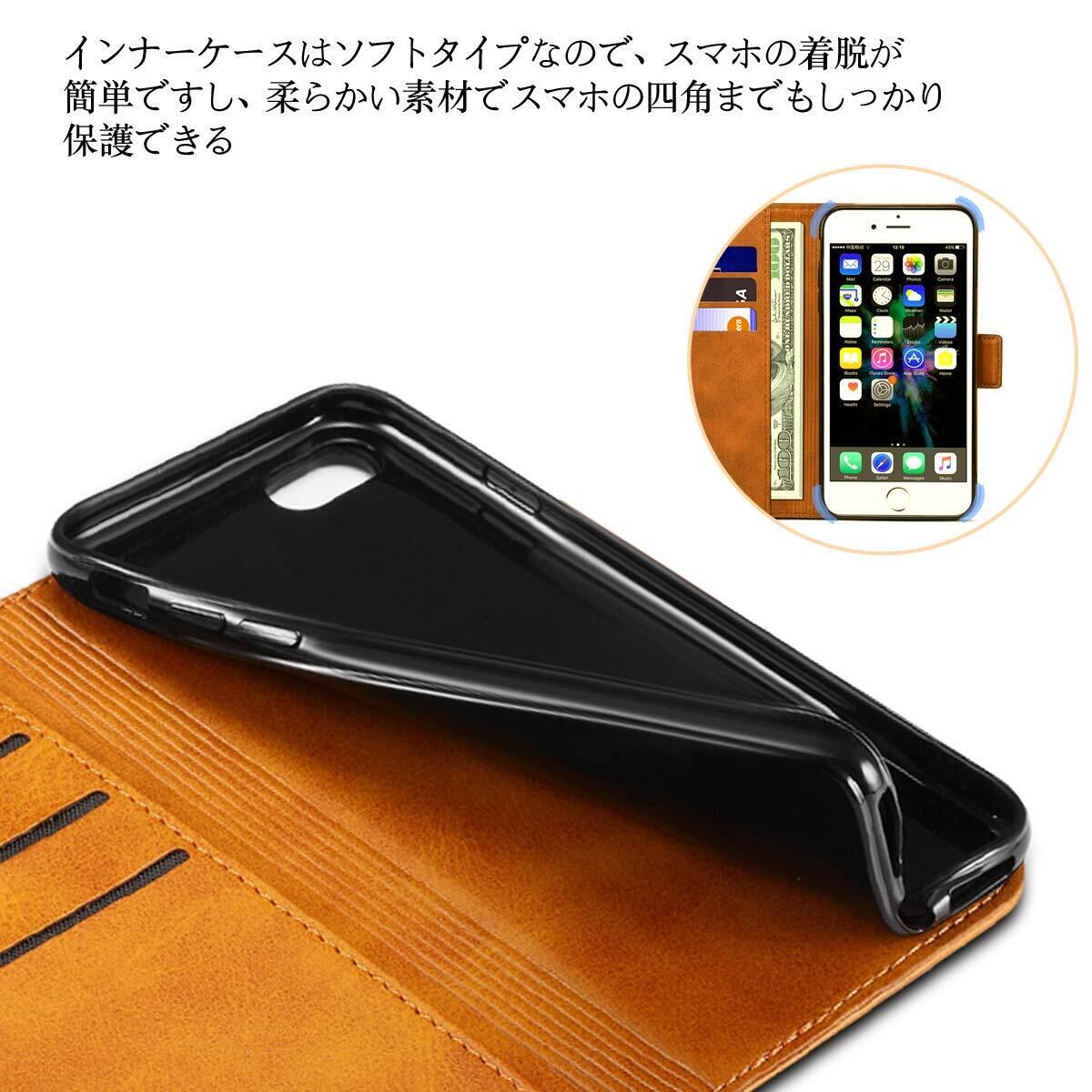 Rssviss iPhone SE2 ケース 手帳型 iphone8 ケース 手帳型 iphone se3 ケース 手帳型 耐衝撃 iphone 8 ケース手帳型 耐摩擦 カード収納 マグネット スタンド機能 4.7 inch 適応 W1 レトロブラウン