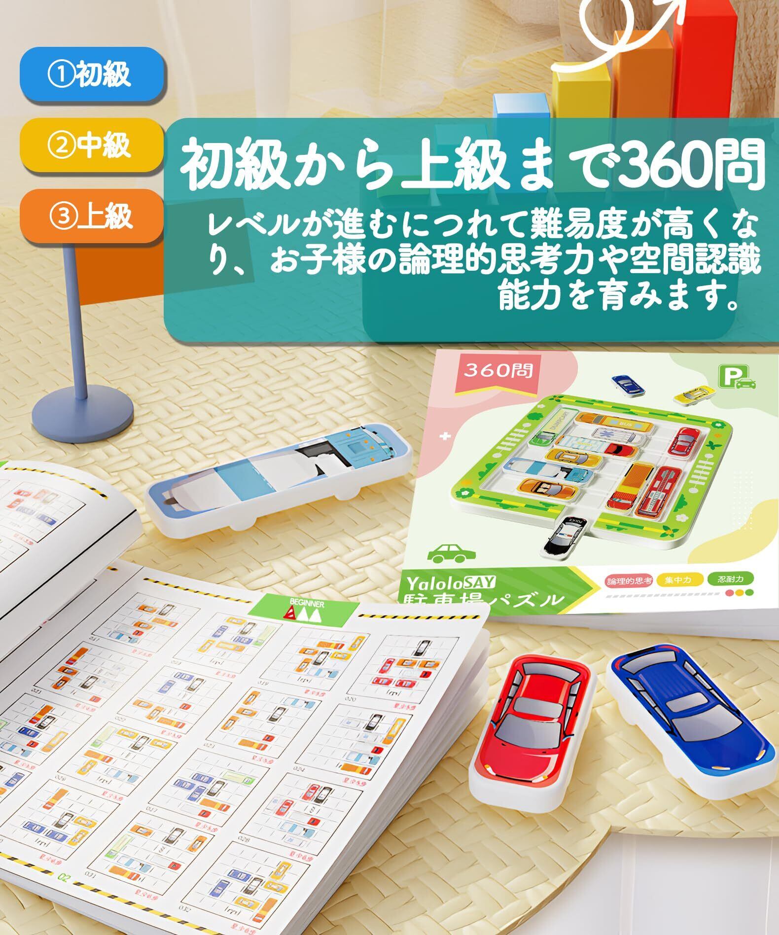 YaloloSay 独創の磁石式駐車場パズル おもちゃ 知育玩具 【難易度3段階 360問に挑戦】 初心者から上級者まで楽しめる全年齢向け (6歳~99歳) 論理的思考力 集中力 忍耐力 脳トレ 認知症予防 日本語取扱説明書付き