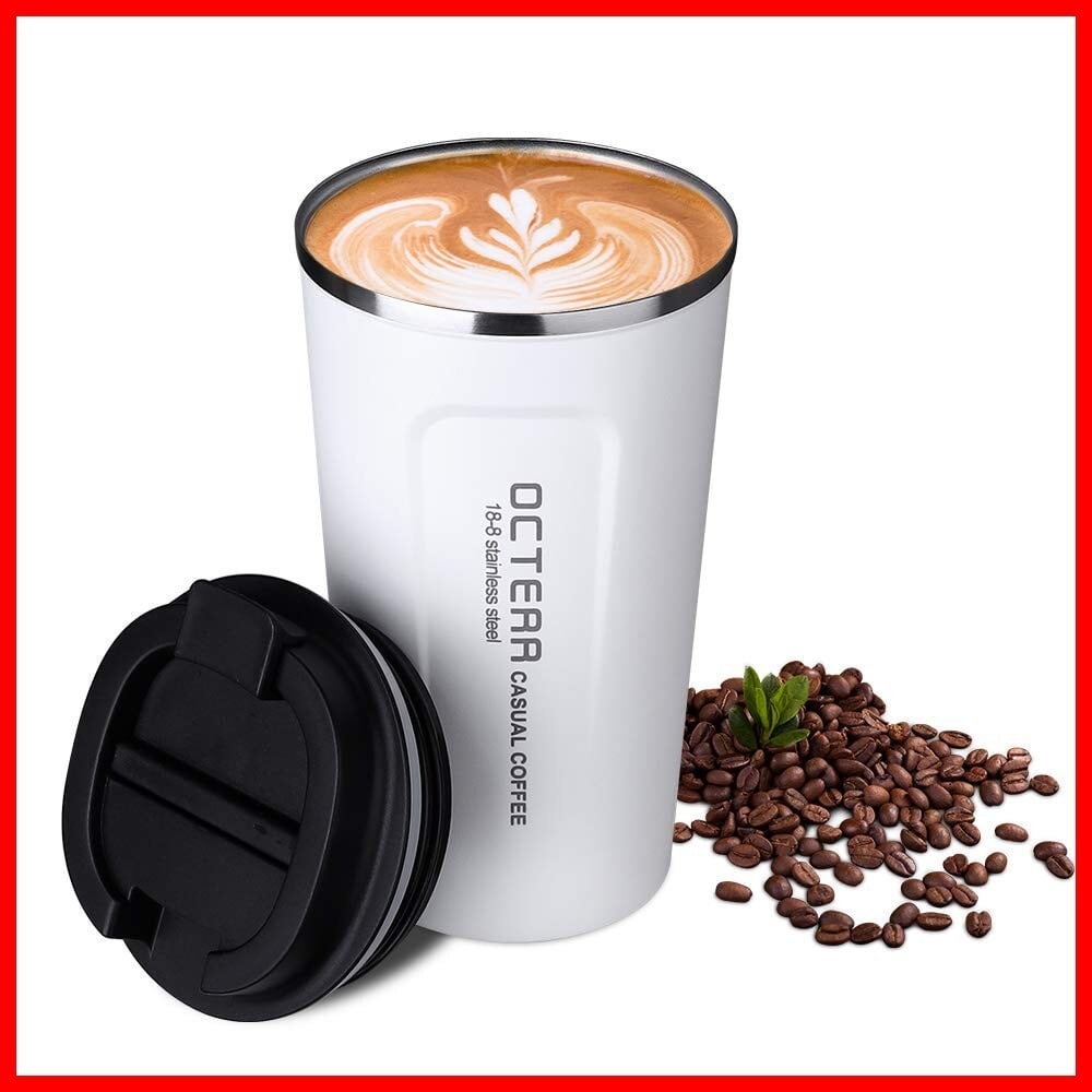 OCTERR マグカップ 保温 コーヒーカップ コンビニカップ 携帯マグ 保冷 タンブラー 真空断熱 ステンレス製 蓋付き 持ち運び 直接ドリップ プレゼントに (ホワイト, 510ml)
