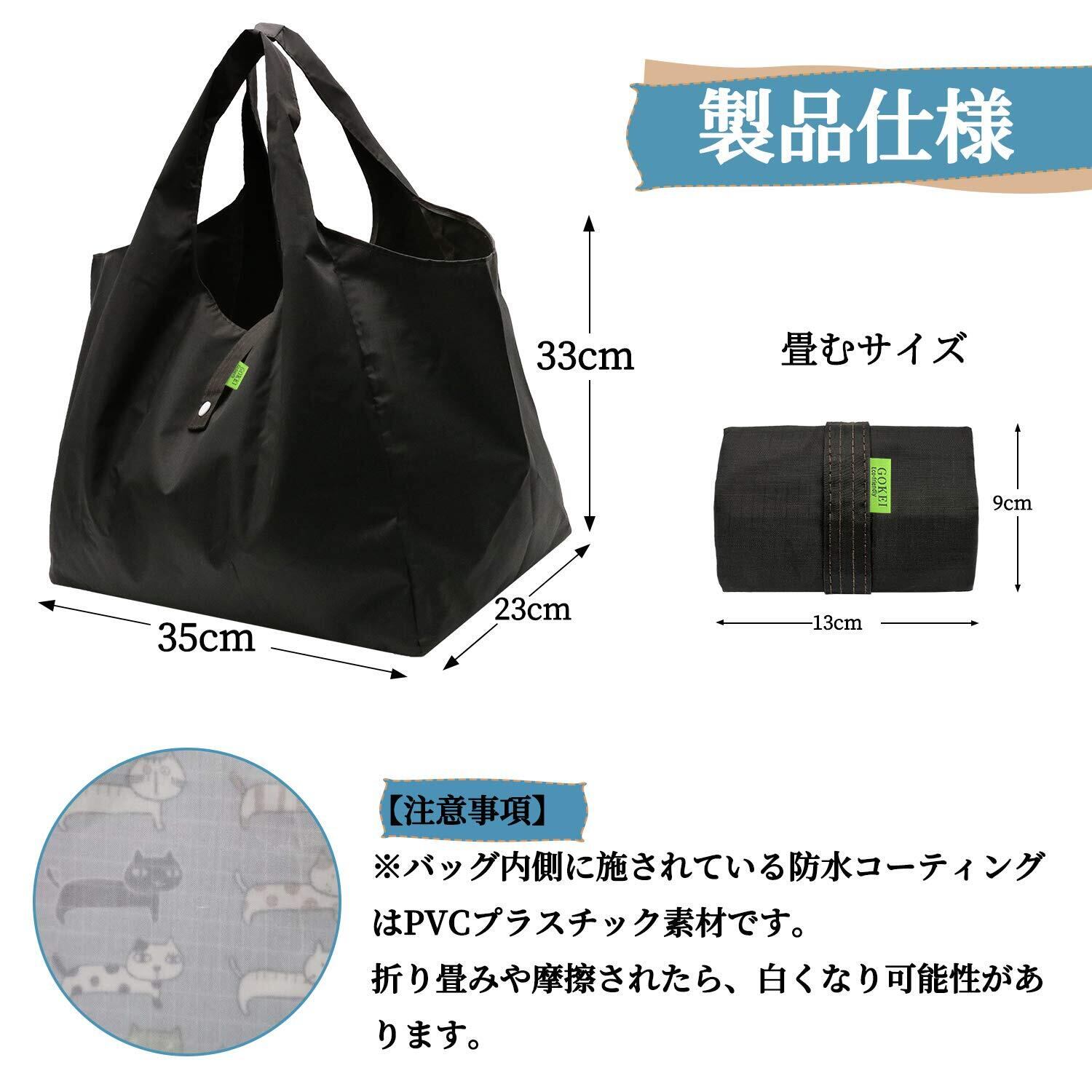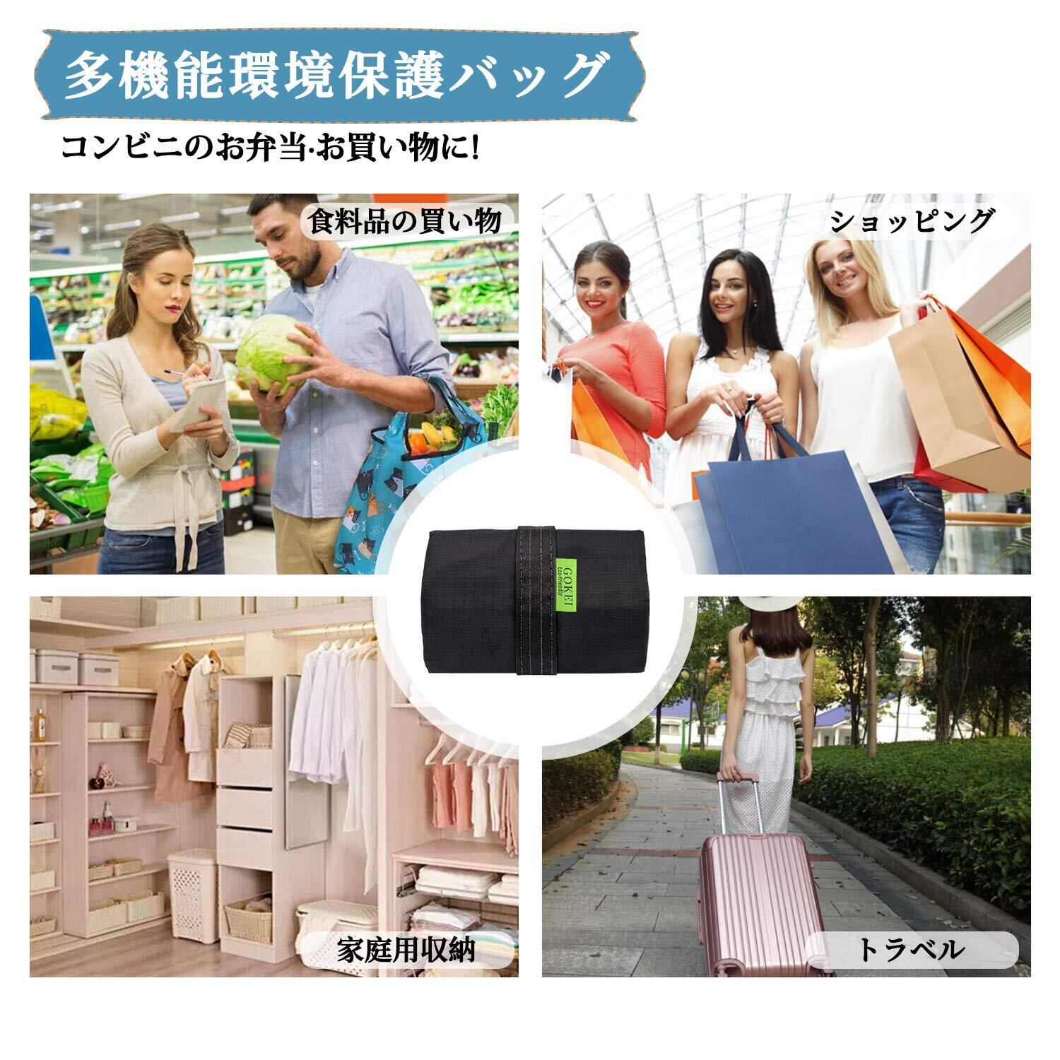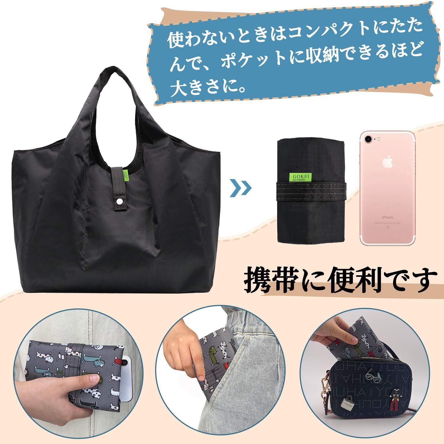 [GOKEI] エコバッグ コンビニバッグ 買い物バッグ 折りたたみ 大容量 防水素材 軽量 買い物袋 コンパクト 収納 水や汚れにも強い