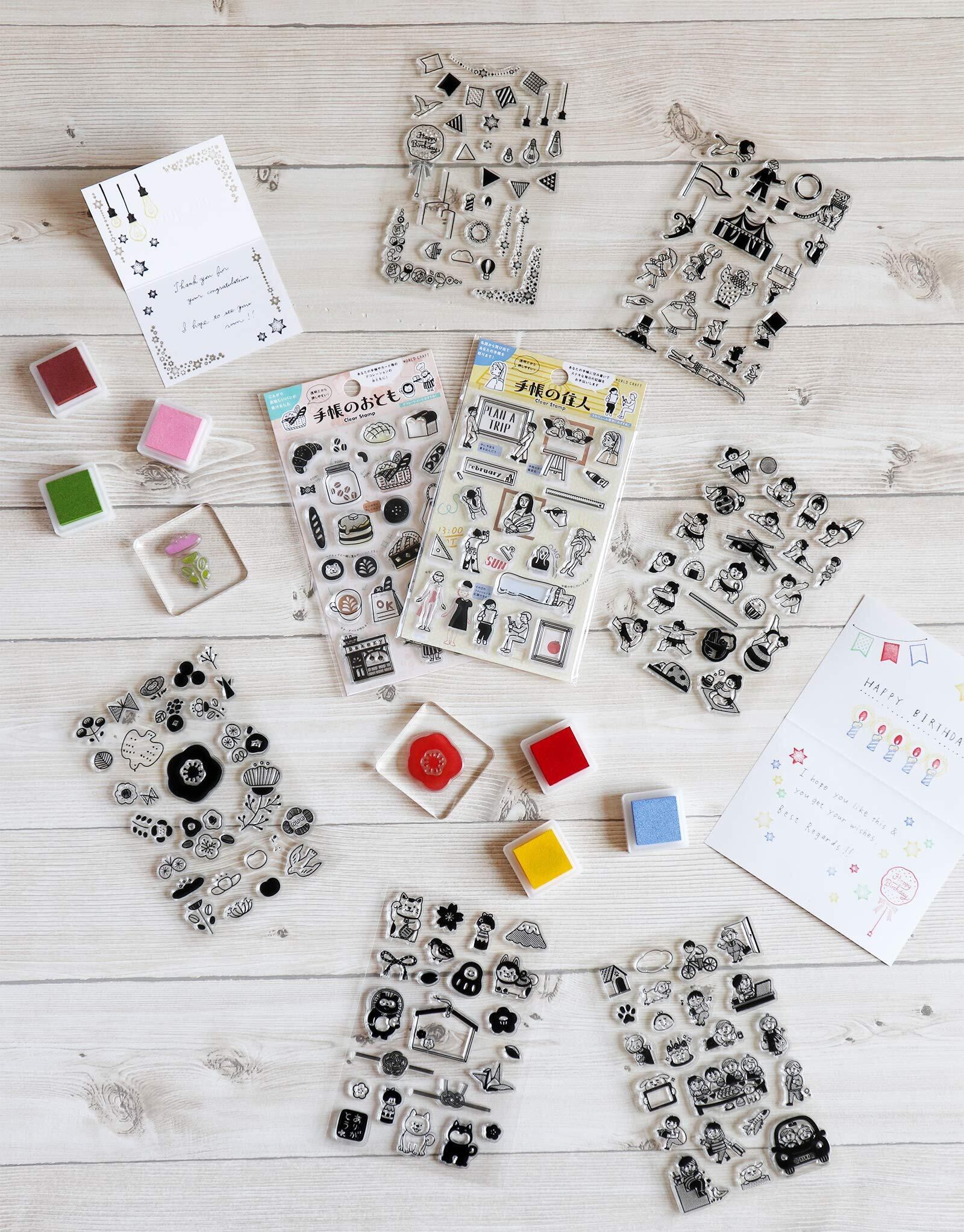 【クリアスタンプ】透明で押しやすいシート状のスタンプ。約20種類もの豊富なパーツ