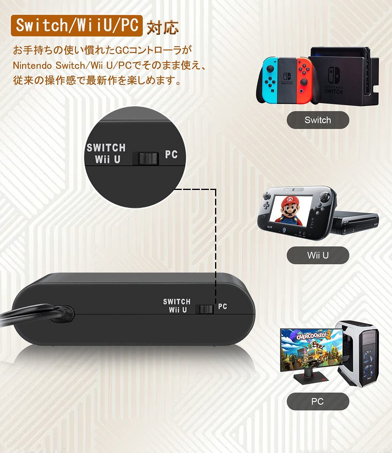 『Switch&Switch 有機ELモデル&Wii U&PC対応』任天堂スイッチ、Switch 有機ELモデル、PC、Wii Uの周辺機器の接続タップです。 これによりお手持ちの使い慣れたGCコントローラがWii U/Nintendo Switchでそのまま使え、従来の操作感で最新作を楽しめる。大乱闘スマッシュブラザーズに特に適しています。スマブラやボンバーマンなど、対戦ゲームが盛り上がります。