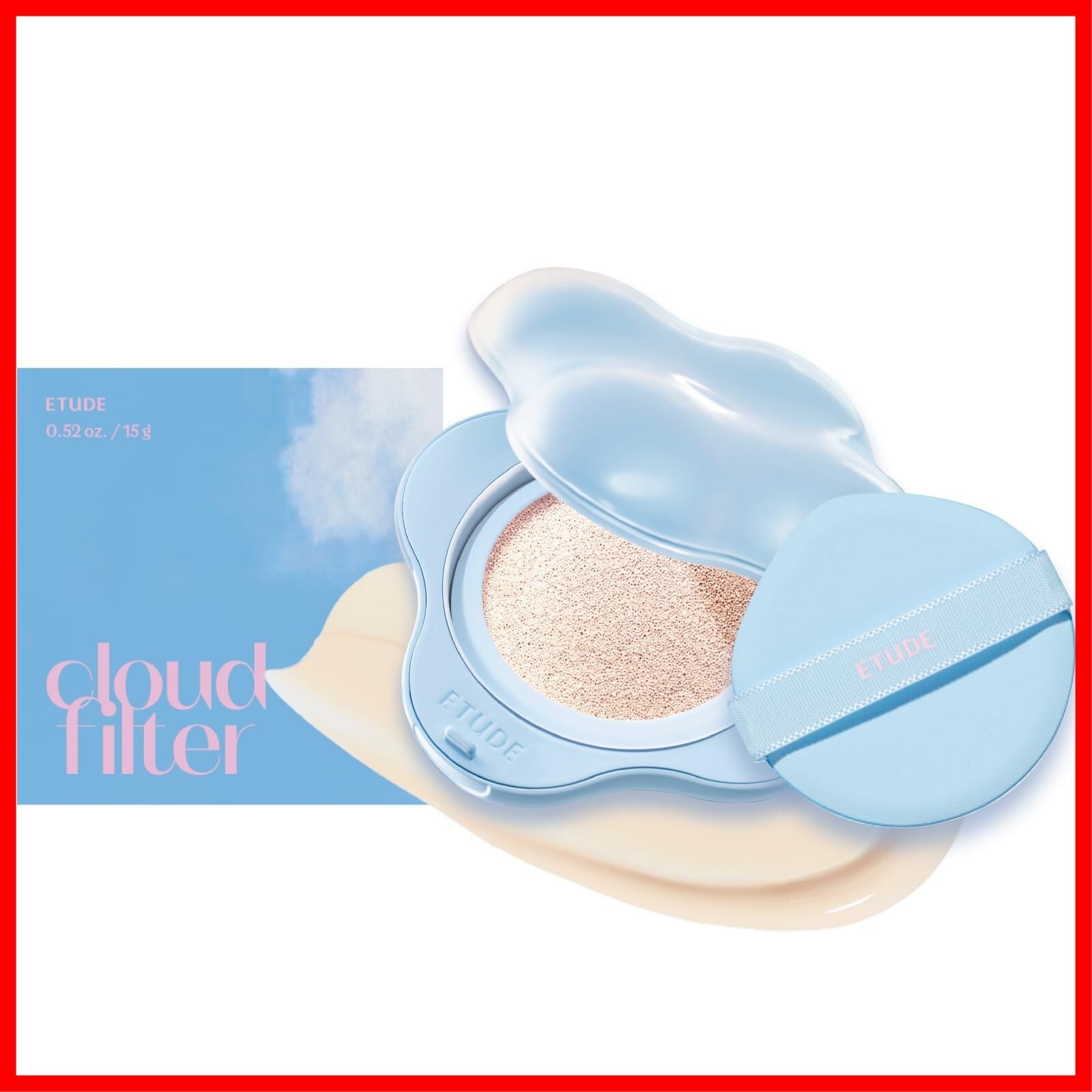 ETUDE [エチュード公式] クラウドフィルタークッション 15g(x1) SPF42 PA+++ クッションファンデーション セミツヤ肌 カラーコントロール Kitts共同開発 透明感 軽い付け心地 (ポーセリン(ナチュラルな肌色), 15g)