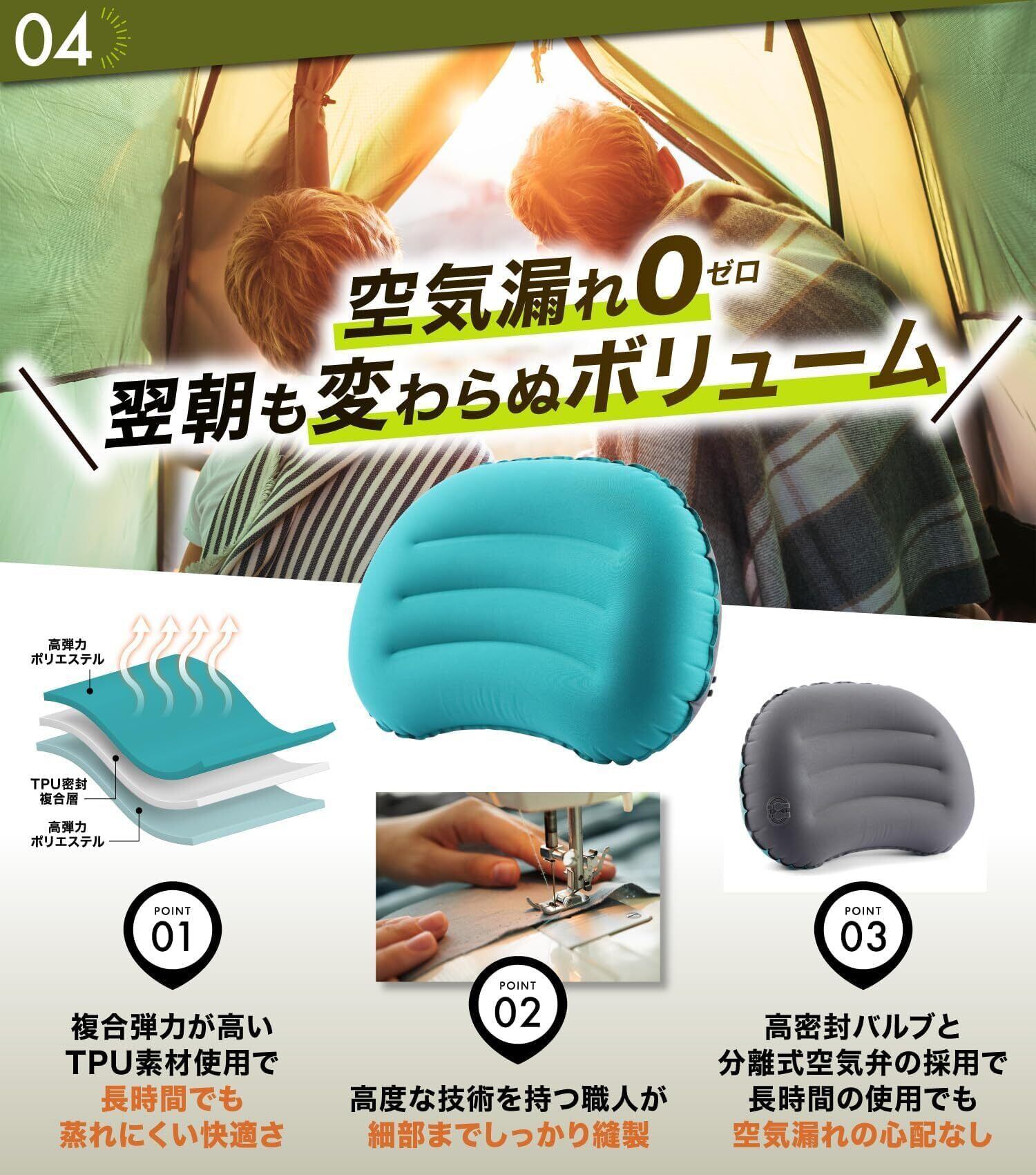 【本体重量106g超軽量設計】普段は小さく。空気を入れればホテルの枕のような寝心地。付属の専用ポーチに入れれば持ち運びもコンパクト。
