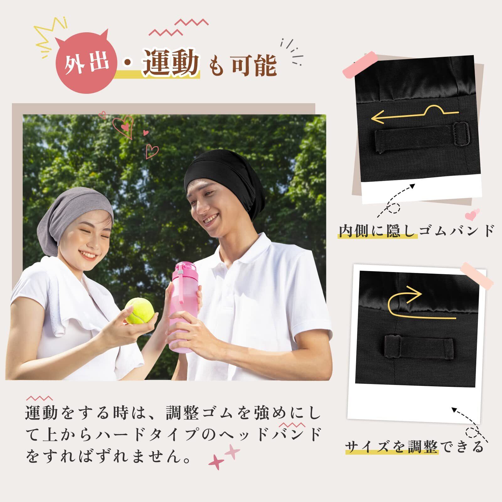 【独特なデザイン】裏地:6Aクラス19匁シルク100% 表地:95%テンセル(レーヨン) 5%スパンデック(ポリウレタン) 外側の生地は通気性が良くて、伸縮性が高く、自由に折りたたむことができます。裏地のシルクは保湿力があり、頭皮の乾燥やパサつきがちな髪の毛に良いです。朝のスタイリングが楽になります。