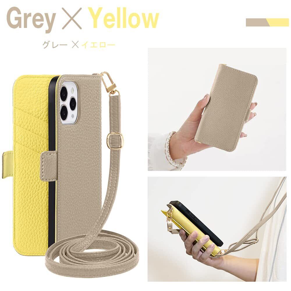 MAGICASE for iPhone14 Pro ケース 手帳型 ショルダー いphone14pro ケース 手帳型 おしゃれ 肩掛け スマホケースiphone14 Pro 女性 可愛い アイフォン 14 プロ ケース 財布型 カード収納 スタンド機能 高級PUレザー 全面保護 防水 耐衝撃 軽量 放熱性 マグネット式 擦り傷防止 防塵人気 バイカラー 6.1インチ(グレー メ イェロー)