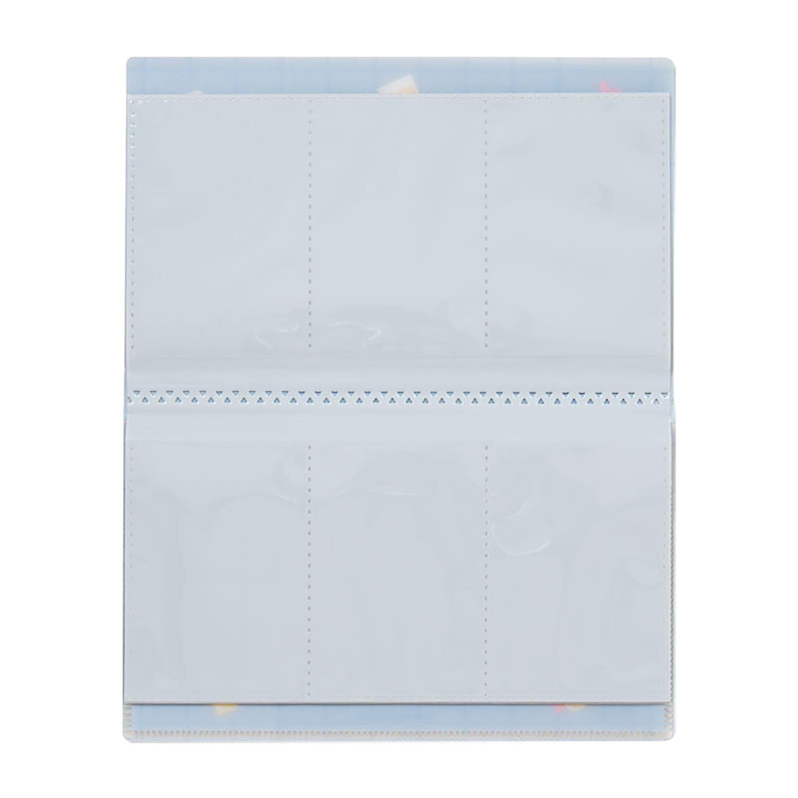 裏表紙の内側にはチケットなどを収納するのに便利な大きめポケット付き。収納可能サイズ:約8.6×5.4cm※「チェキ」は富士フィルムの登録商標です。