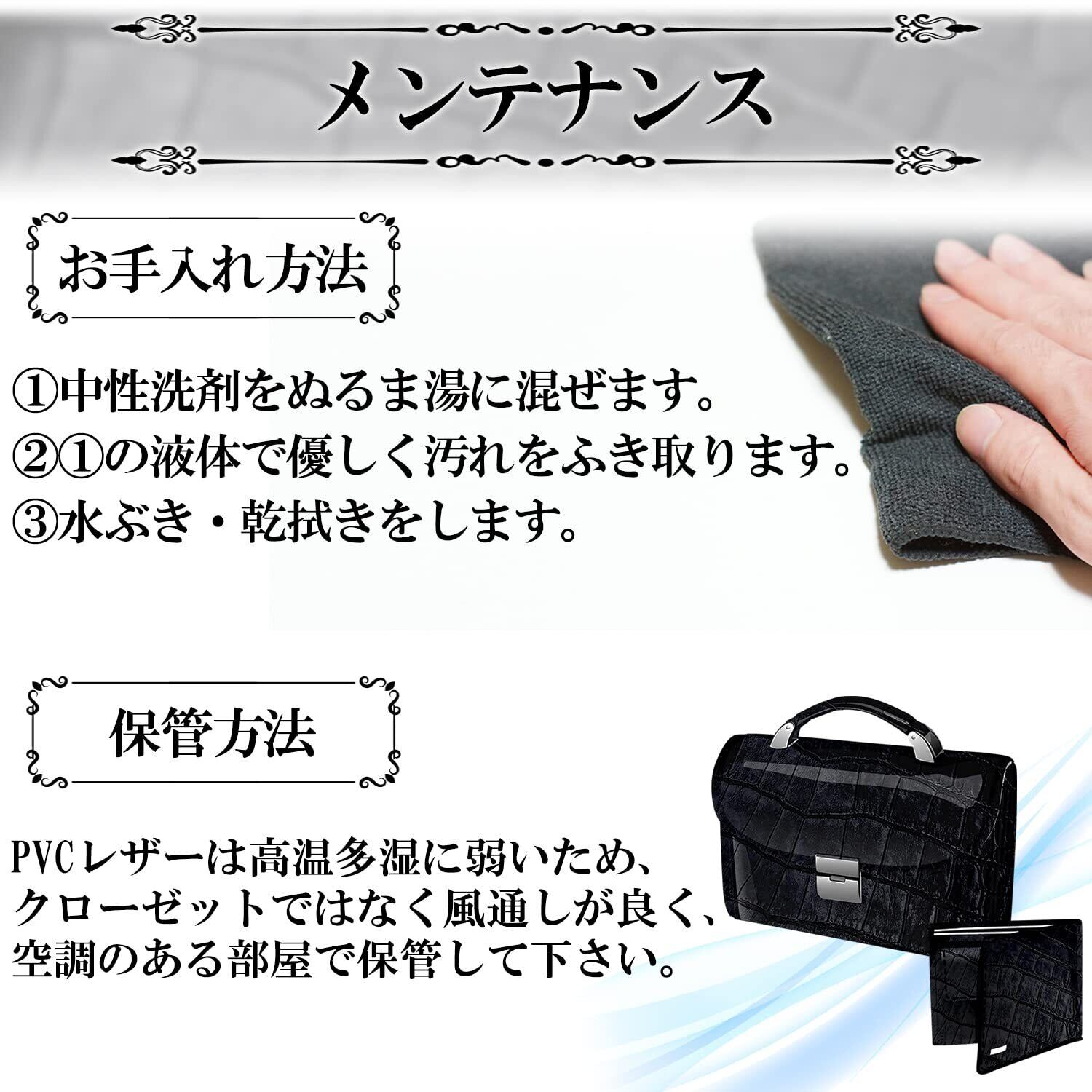 お手入れ方法:汚れの除去には、ぬるま湯で薄めた中性洗剤で優しく拭き取り。