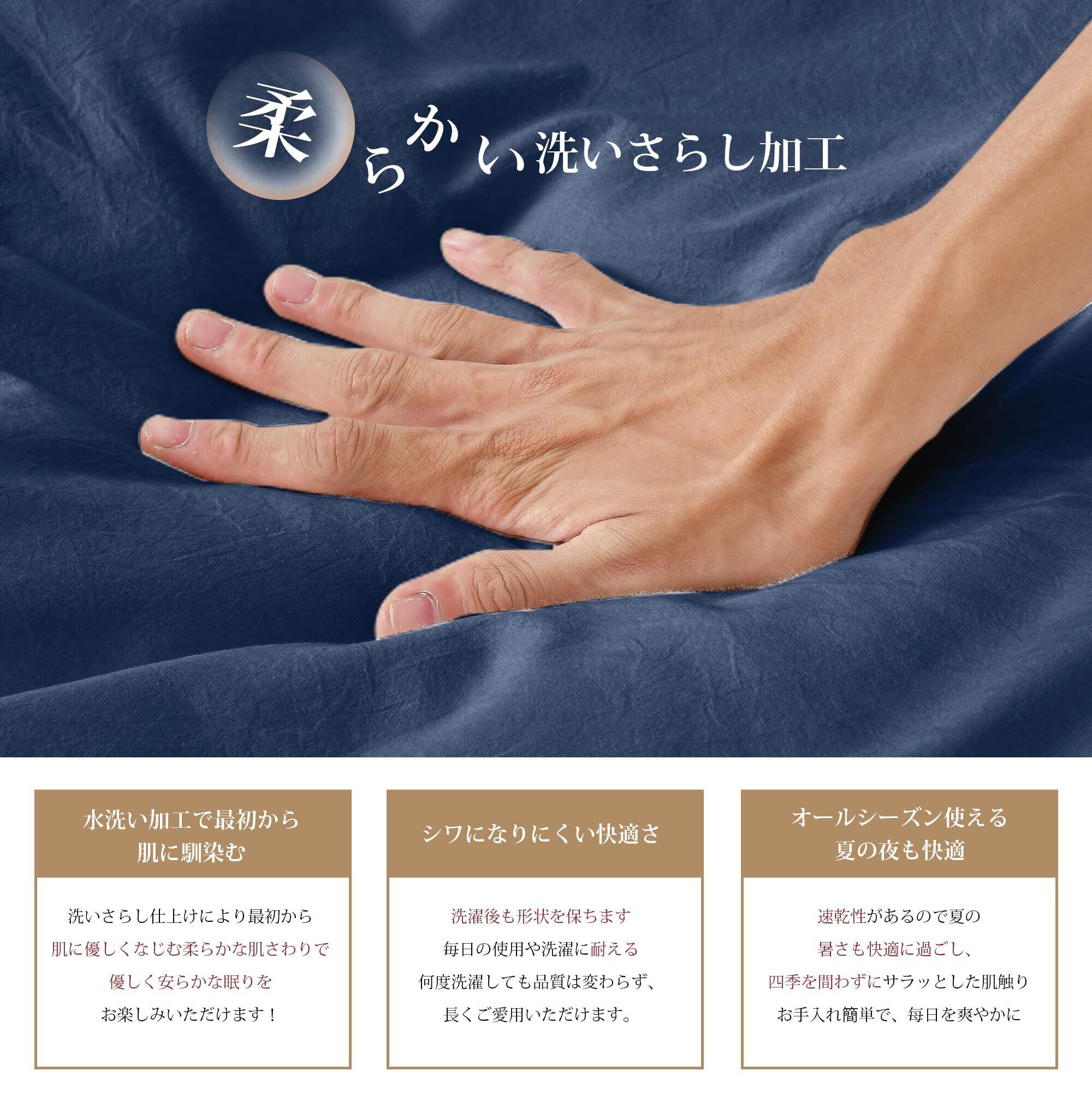 AYO 寝具カバーセット 布団カバーセット 洗いざらし シワ加工 水洗い やわらか (掛け布団カバー ボックスシーツ 枕カバー)吸水速乾 丸洗いOK 肌に優しい 無地 シンプル オールシーズン(シングル・3点セット ネイビー) | hananoki