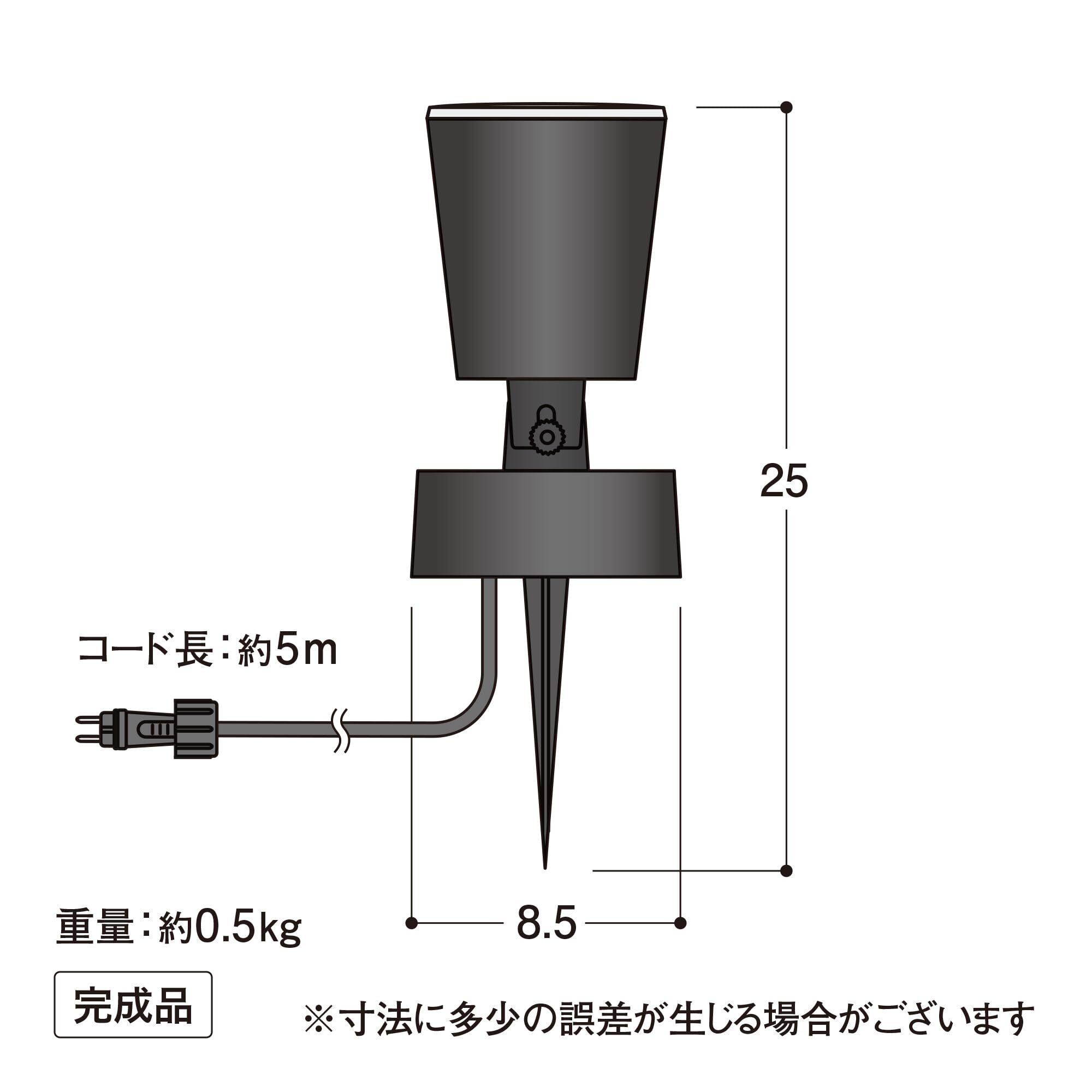 サイズ:約幅8.5cm×奥行8.5cm×高さ25cm、コード全長:約5m