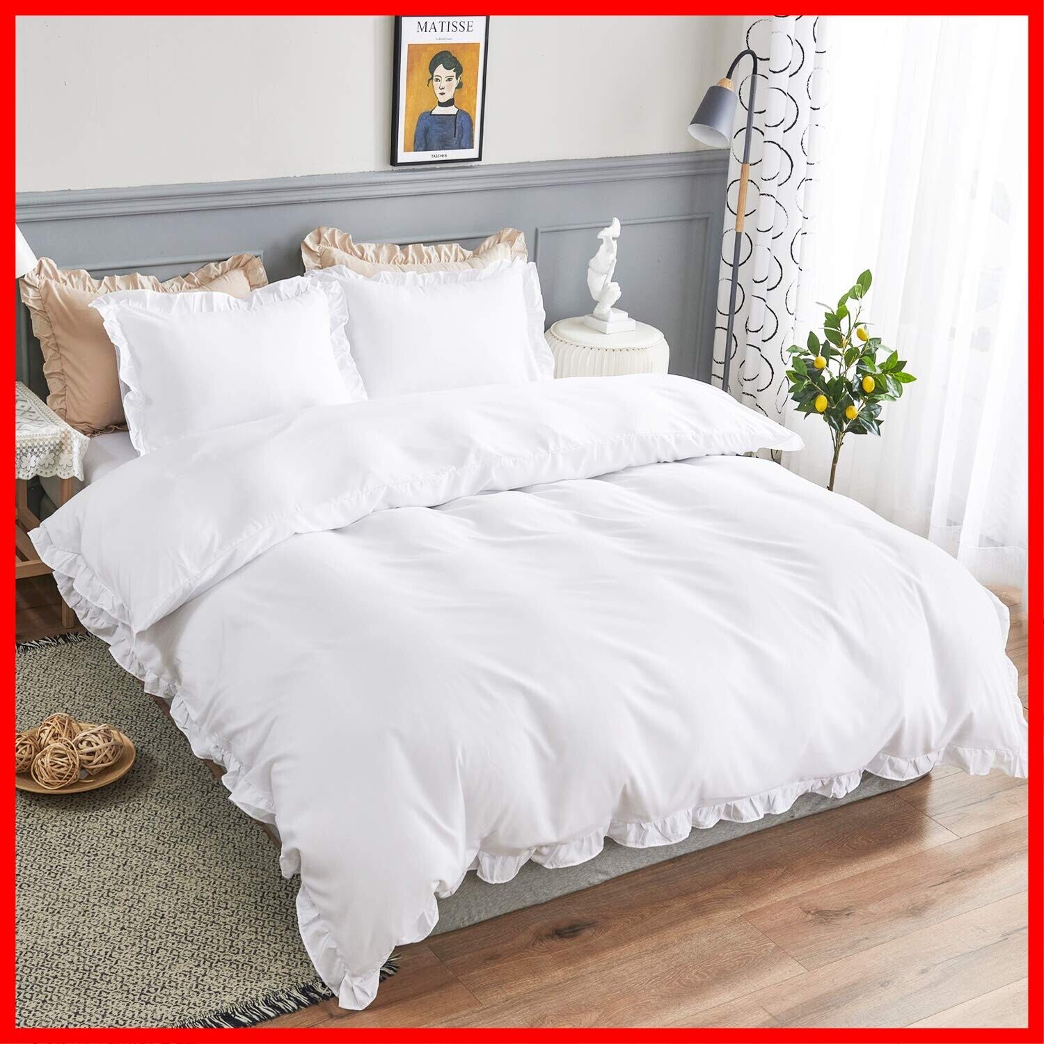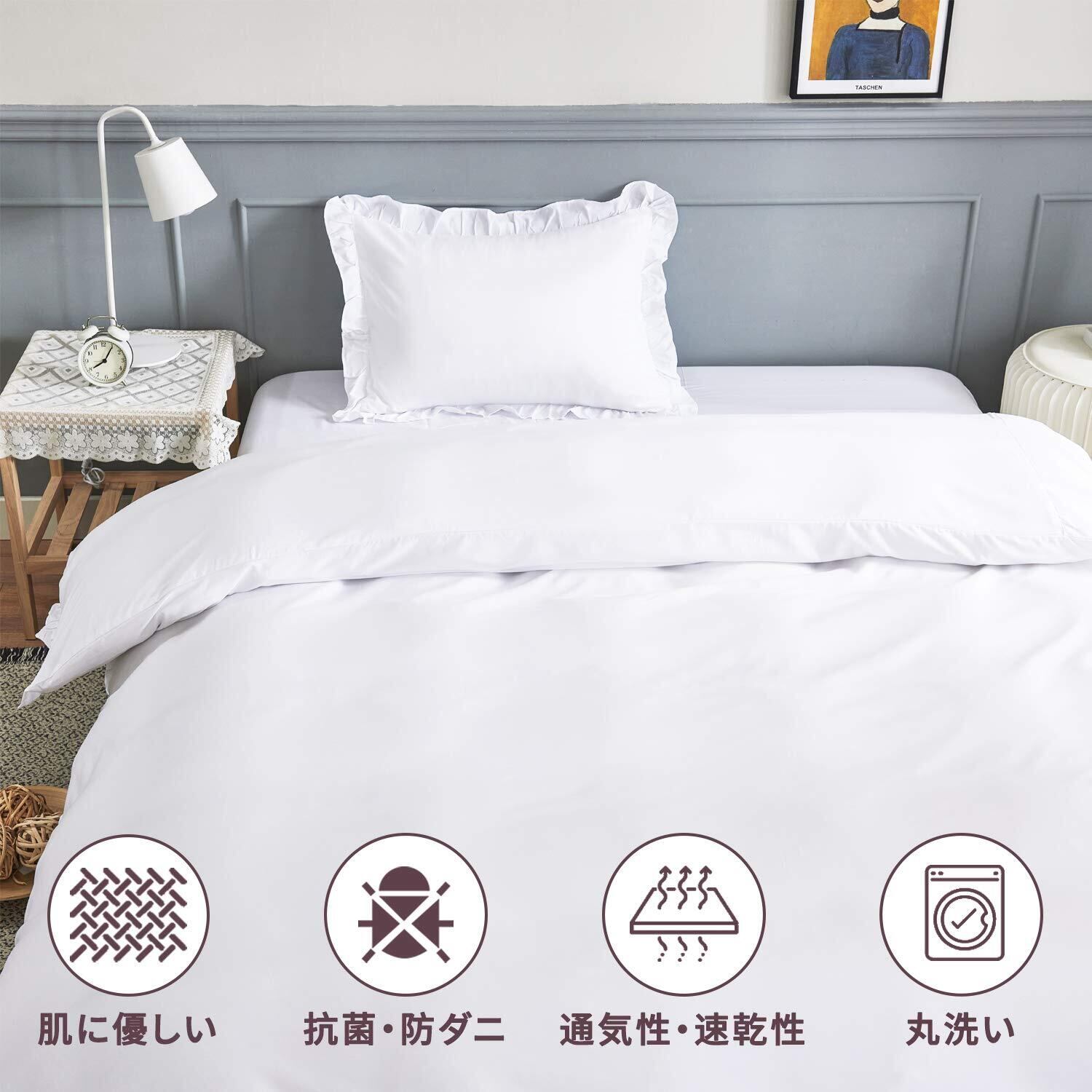 【 限定】STVICTORY 布団カバー シングル 3点セット 掛け布団カバー ベッドカバー 枕カバー ボックスシーツ ベッドシーツ 寝具カバーセット おしゃれ フリル付き ピーチスキン加工 洋式和式兼用 洗い替え 速乾タイプ (シングル ホワイト) | hananoki