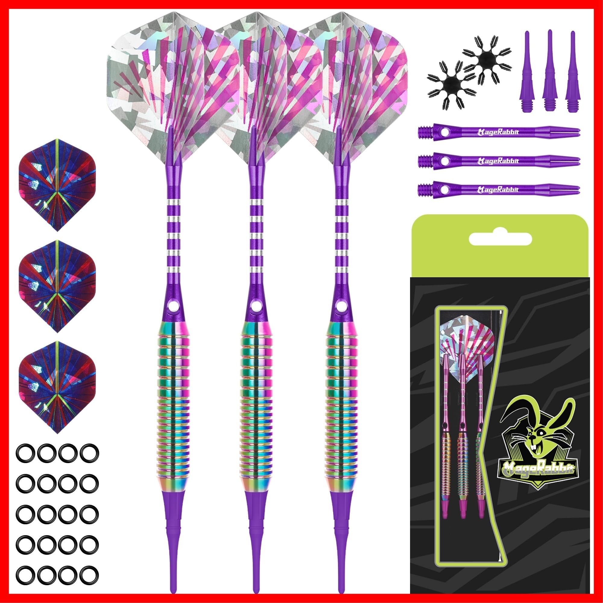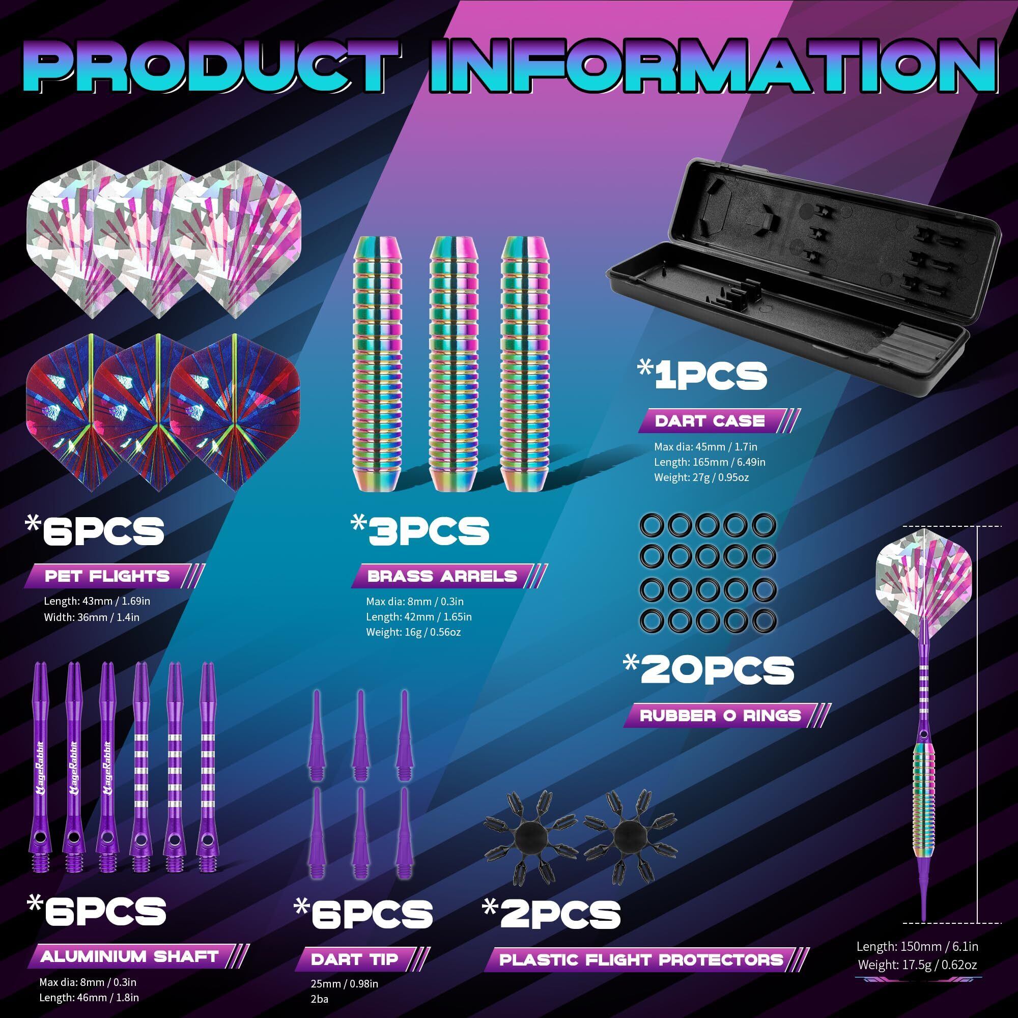 MageRabbitソフトチップダーツセット、3本のアルミシャフト、プロフェッショナルダーツ、3枚の予備ダーツフライト、3本の交換用プラスチックシャフト付き、銅素材のダーツ 16g 電子ダーツボード用, ダーツ 矢,ダーツ 矢 初心者 | hananoki