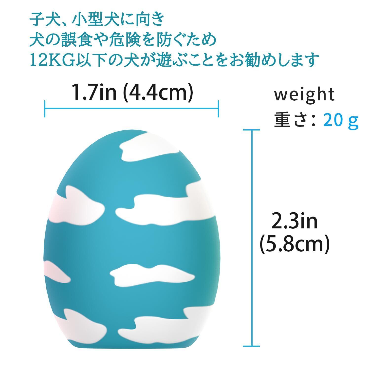 【可愛い6点セット・小型犬・子犬に適用・愛犬遊び時でご注意】 多彩な心地よい色と柔らかい質感の卵のデザインとわいい柄ので、どんなワンちゃん遊びやすく、子犬、小型犬に向きの超人気おもちゃです。犬の誤食や危険を防ぐため、12kg以下の犬が遊ぶことをお勧めします。与えたままの使用は破損や事故につながりますので、必ず飼い主が一緒に遊び、万一破損した場合はすぐに取り上げてください。
