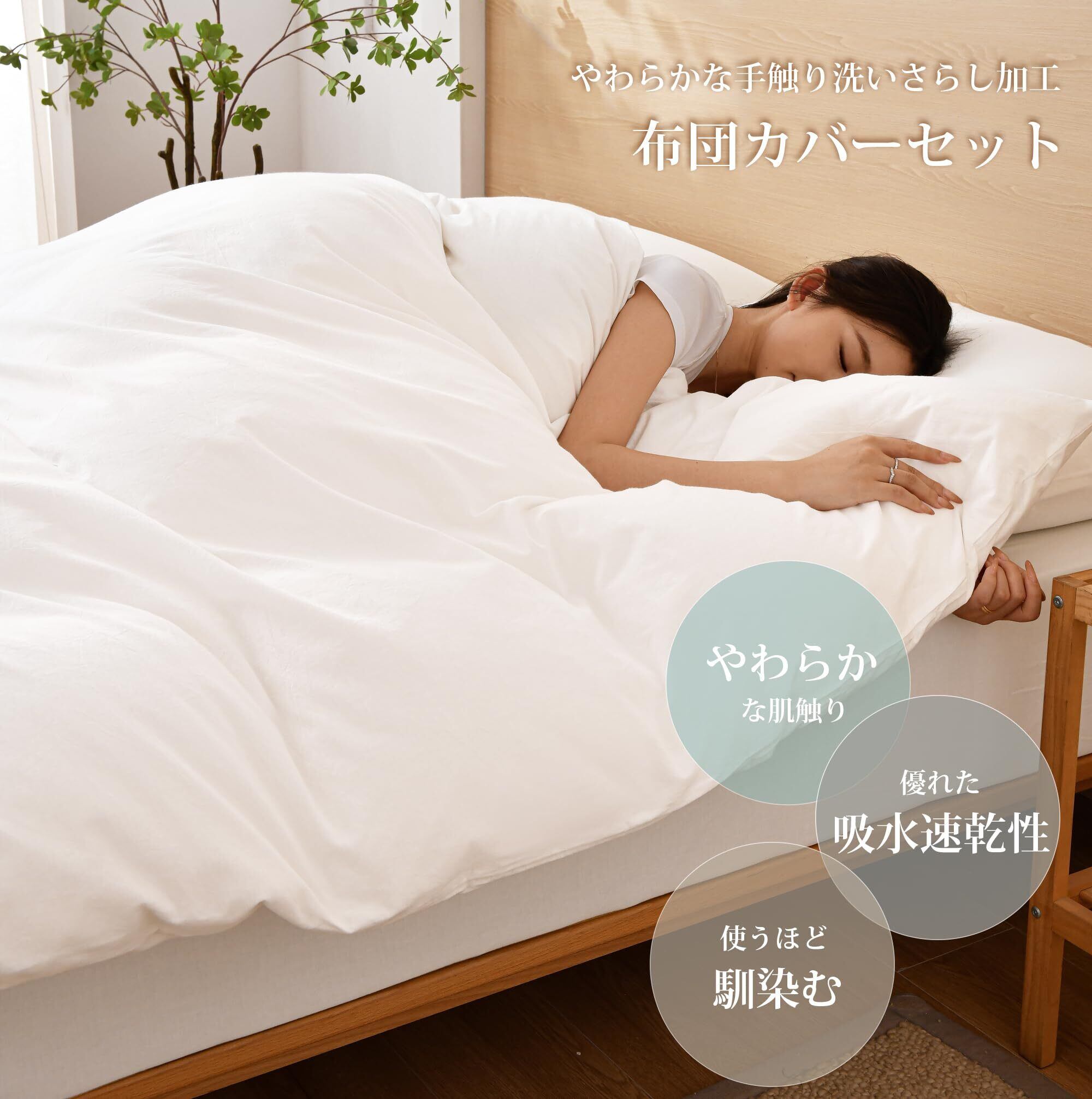 AYO 寝具カバーセット 布団カバーセット 洗いざらし シワ加工 水洗い やわらか (掛け布団カバー ボックスシーツ 枕カバー)吸水速乾 丸洗いOK 肌に優しい 無地 シンプル オールシーズン(セミダブル・4点セット ホワイト) | hananoki