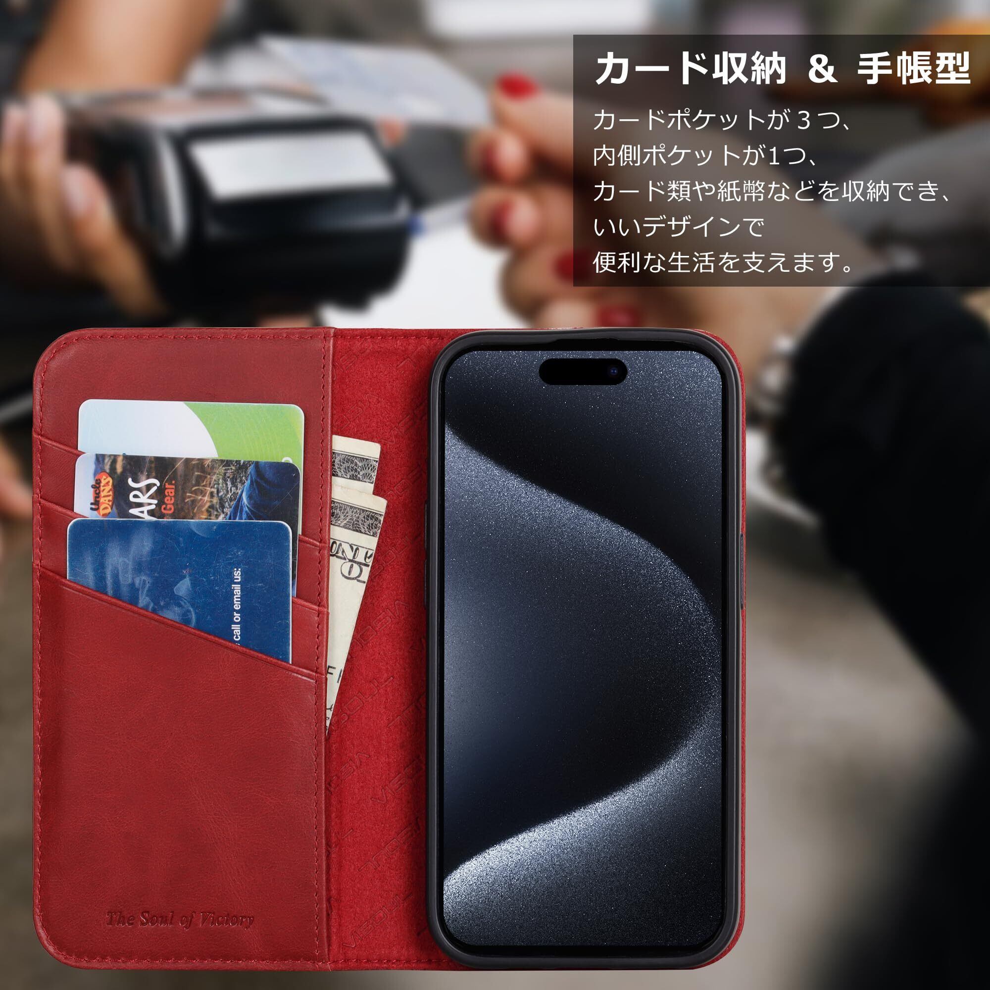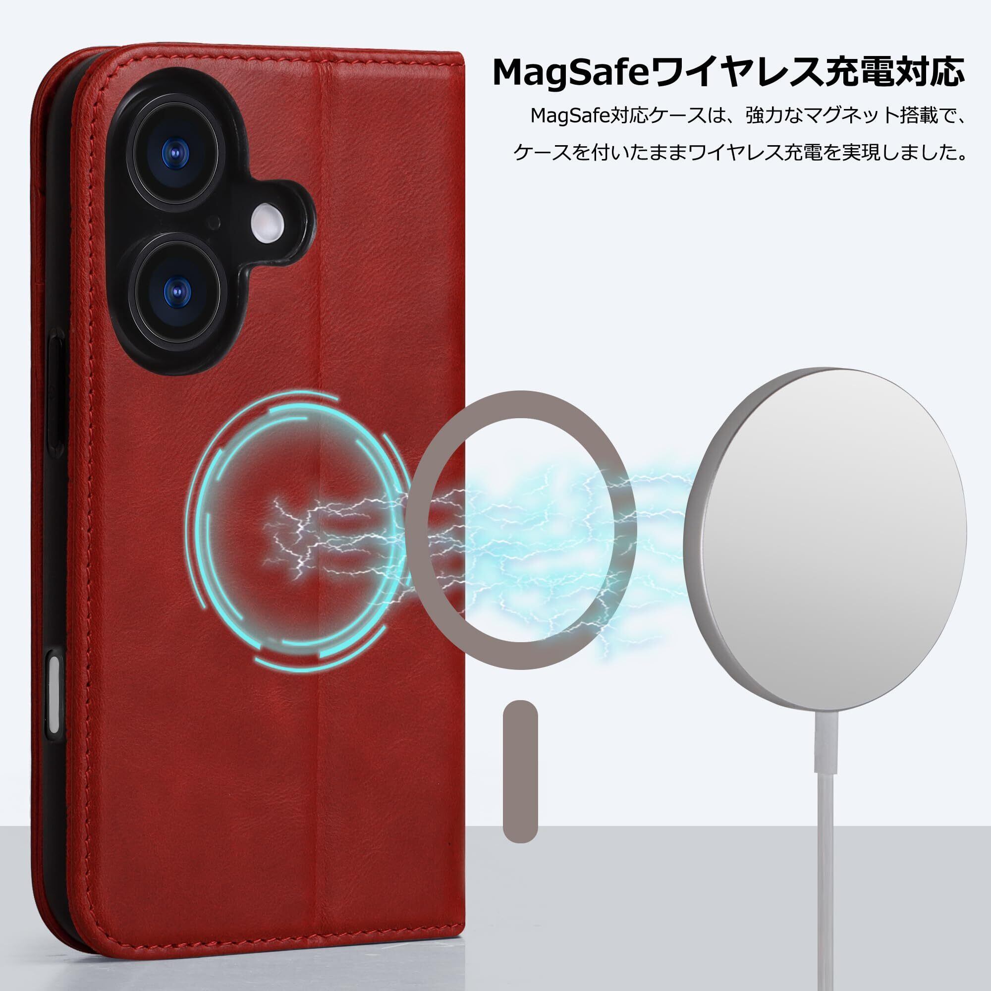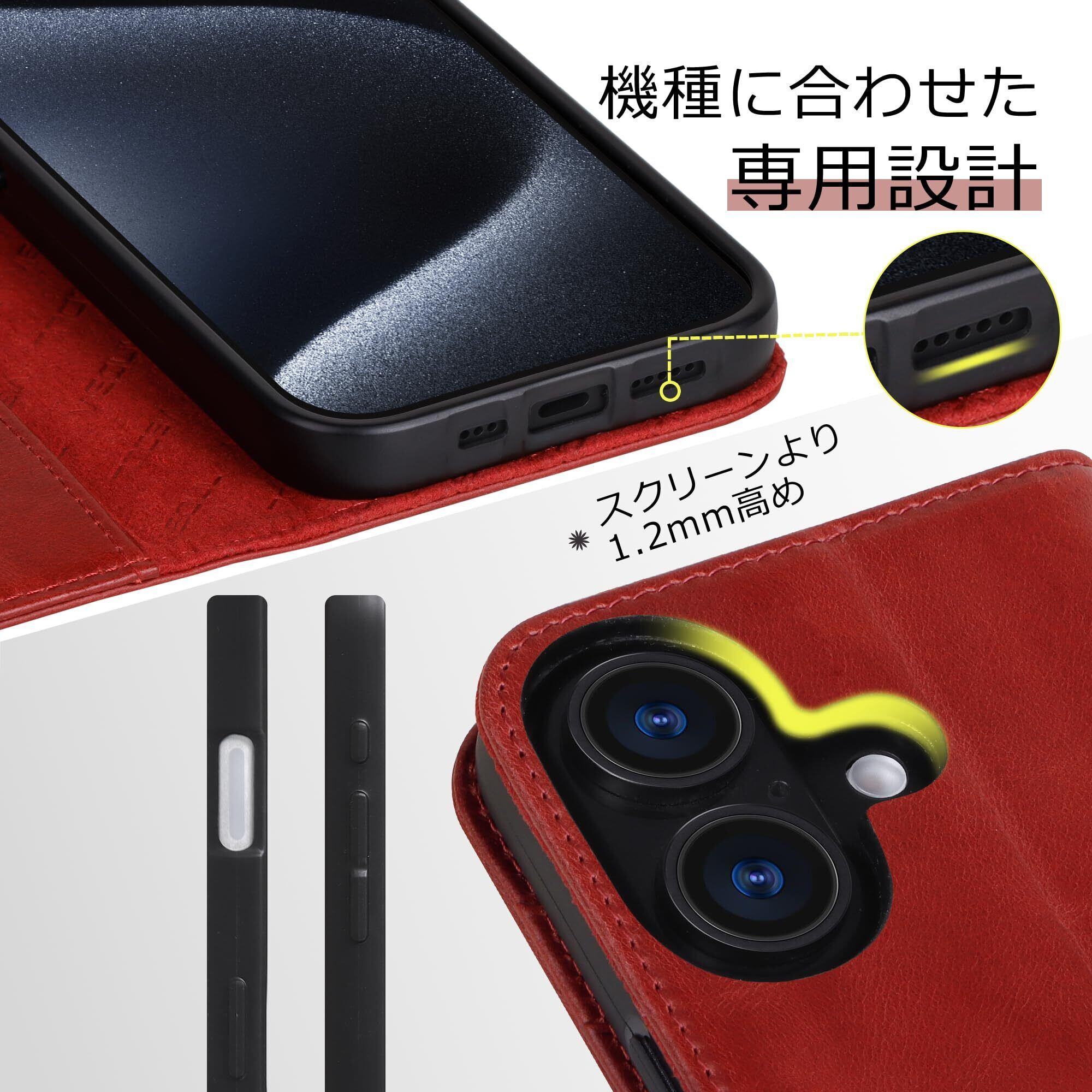 VISOUL iPhone16 対応ケース 手帳型 本革 手帳型ケース アイフォン16 ケースMagSafe対応 アイホン16 横置きスタンド機能付き手帳型ケース スマホケース ワイヤレス充電対応レザーケース カード収納 携帯ケース 全面保護 マグネット 柔軟なTPU素材 あいふぉん16ケース 6.1インチ対応 アイフォン16 レッド