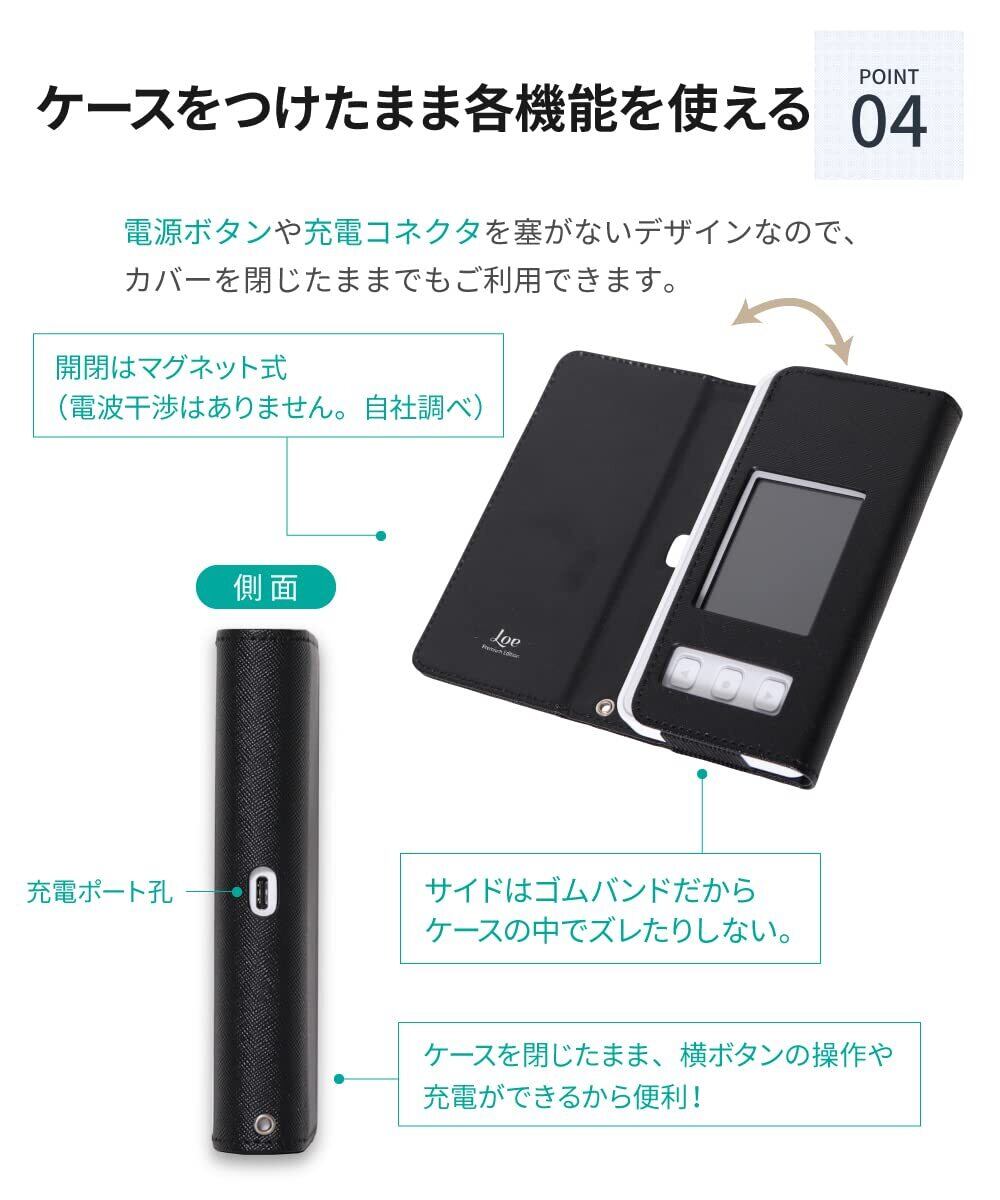 薄く肌触りがよいLOE独自のタブレットケースに用いられる本革に近い高級PUレザーを用い、ルーター本体を衝撃や傷からソフトに守ります。
