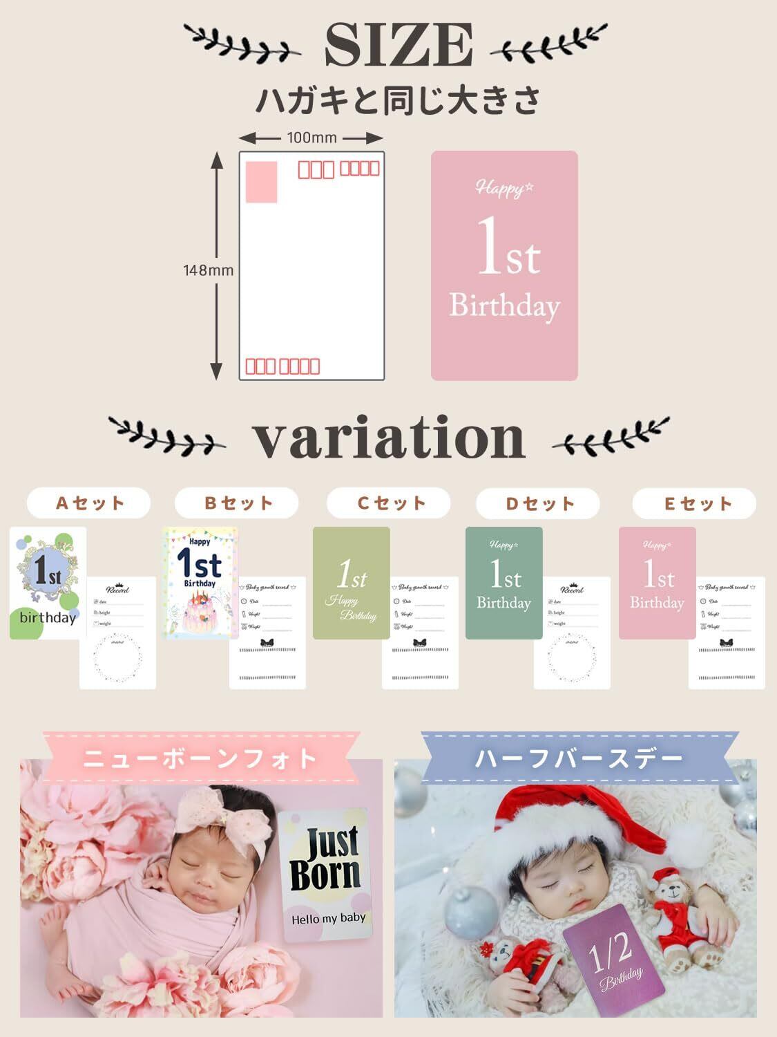 §&∞&COCO 日本製 マンスリーカード 月齢フォト ハガキサイズ 月齢カード ニューボーンフォト マンスリーフォト ベビー 赤ちゃん (Aセット)