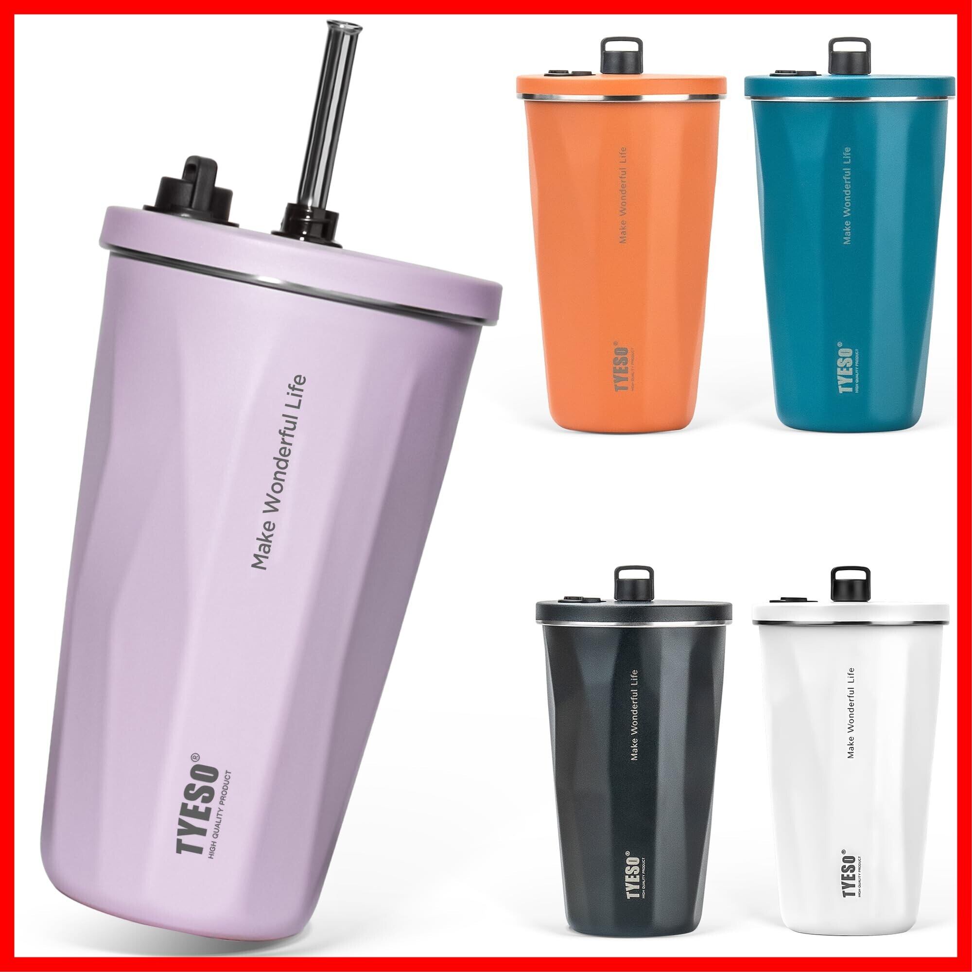 TYESO タンブラー ストロー付き ステンレス 広口 真空断熱 ホームオフィス アウトドア 多色 保温 保冷 ふた付き 600ml 大容量 女の子 男の子