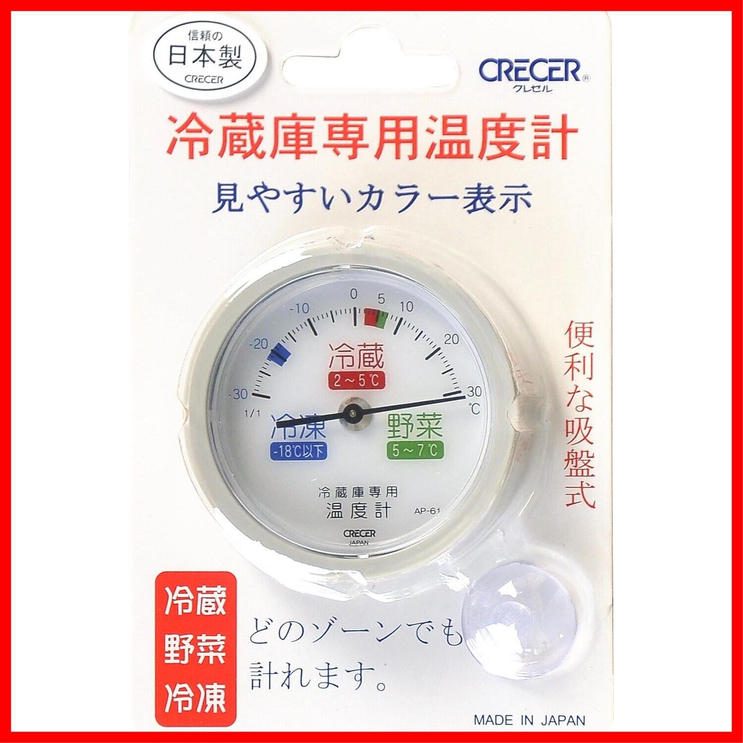 クレセル 冷蔵庫用温度計 アナログ AP-61 吸盤付き AP-61