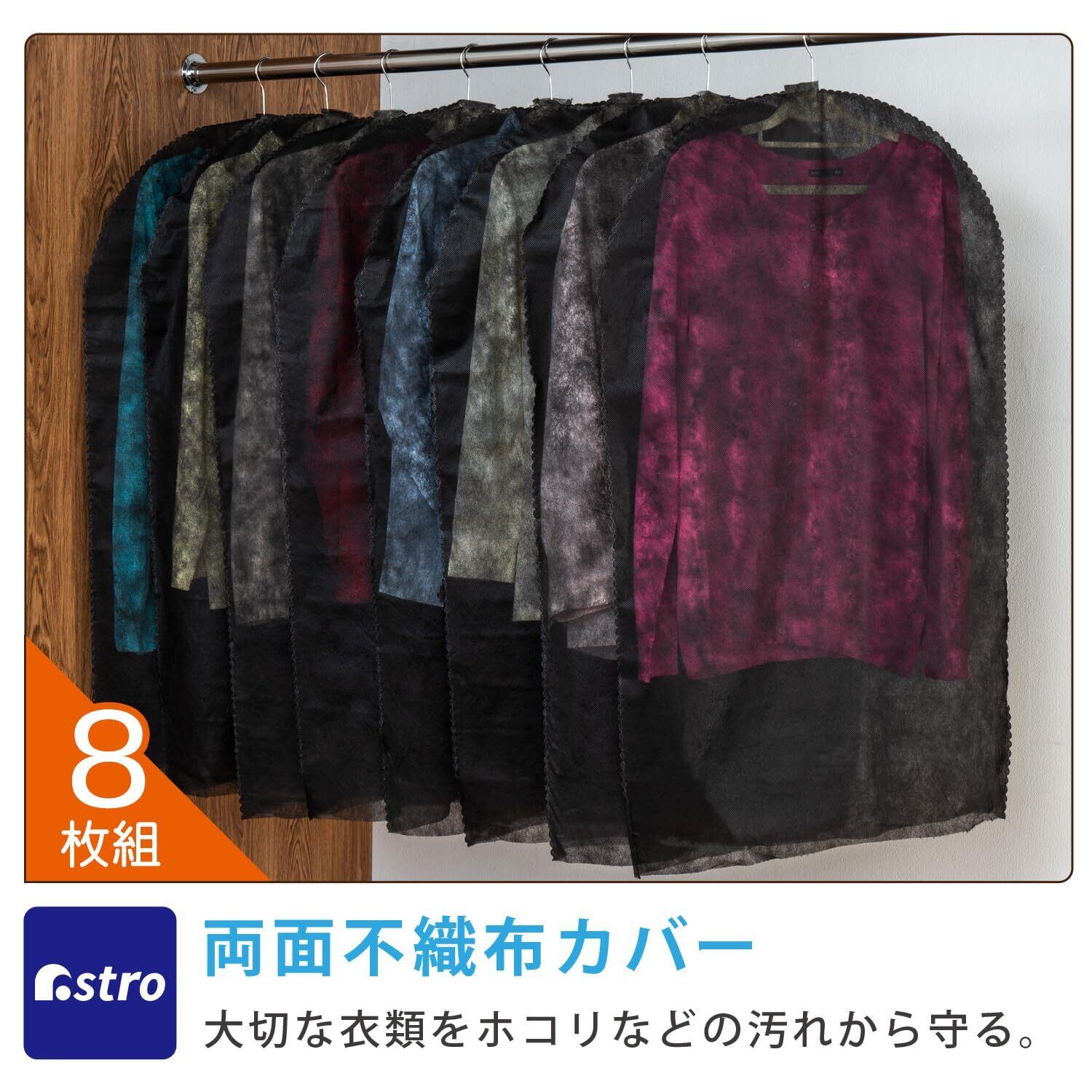 アストロ 衣類カバー ブラック ショートサイズ 60×100cm 8枚組 洋服カバー スーツカバー 衣装カバー 収納カバー 通気性の良い不織布製 下部開き仕様 埃除け ジャケット 礼服 喪服 冠婚葬祭 クリーニング後の衣類の保管に 防塵 カット可能 605-14