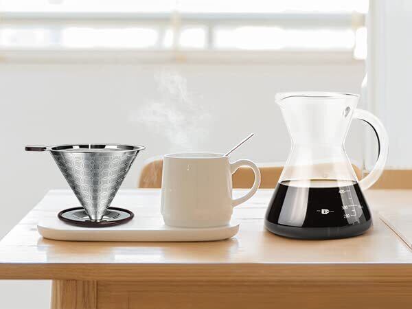 【ステンレス製】ドリッパーは上質なステンレス製フィルターを採用し、樹脂製、陶器製に比べて強度、耐熱、耐腐食性、耐久性に優れていて、何度も繰り返して利用することができ、とってもエコ的でお財布や環境にも優しいです。洗浄用のブラシが付きます。