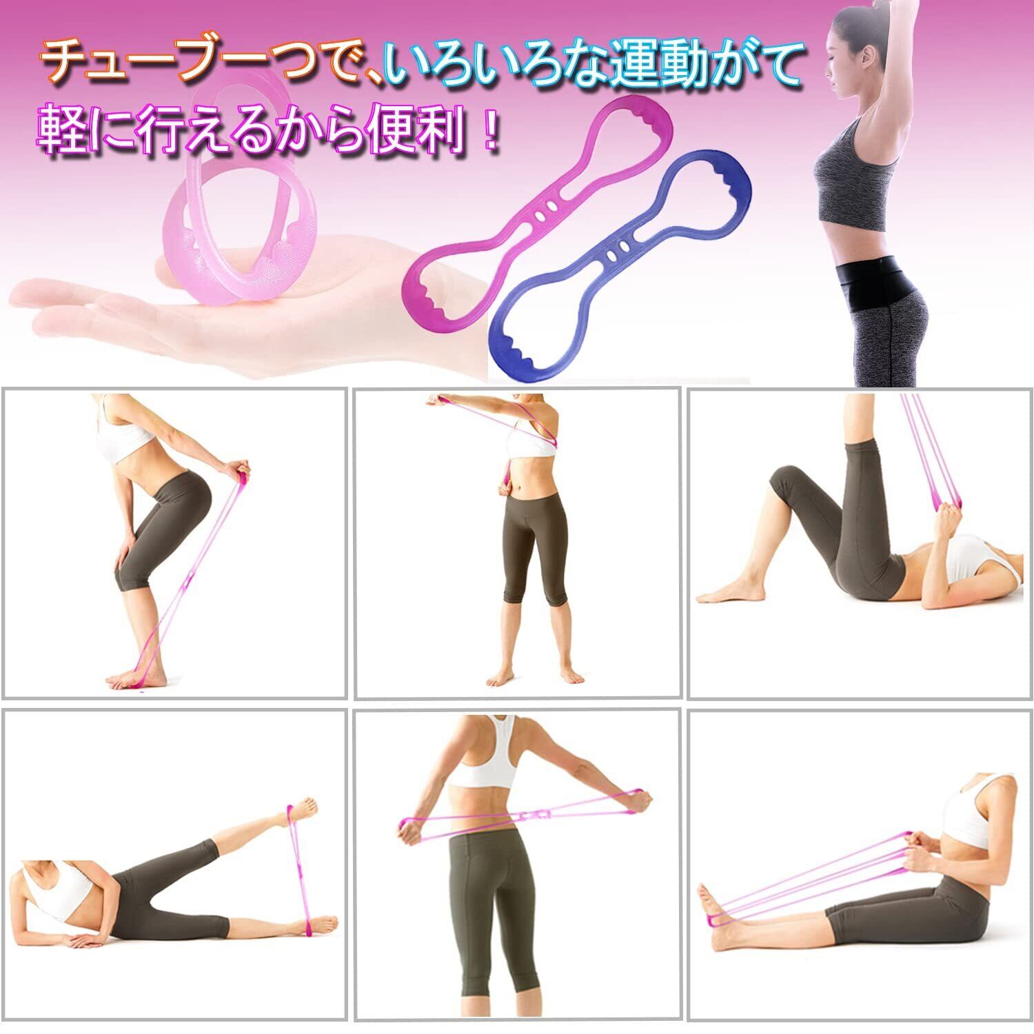足楽堂 マルチチューブ エクササイズチューブ トレーニングチューブ 8字タイプ 弾性 ゴムチューブ フィットネス ストレッチ 美尻 ヨガ シェイプアップ ピラティス 男女兼用