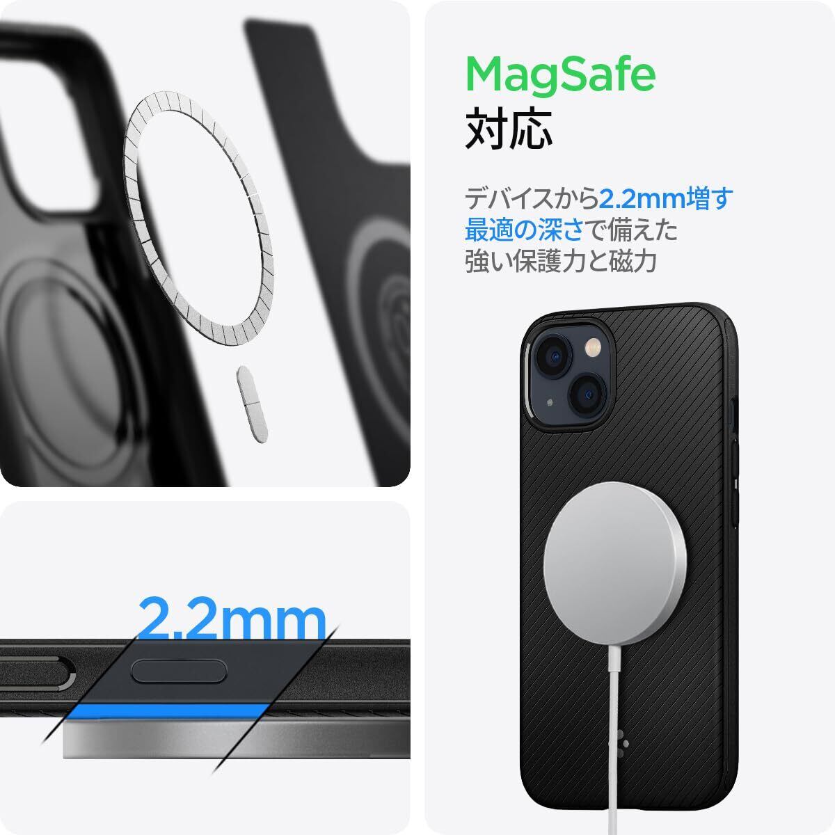 Spigen iPhone 13 ケース MagSafe 耐衝撃 薄型 軽量 さらさら 米軍MIL規格取得 レンズ保護 指紋防止 擦り傷防止 マット仕上げ ワイヤレス充電対応 マグ・アーマー ACS03546 (マット・ブラック) | hananoki