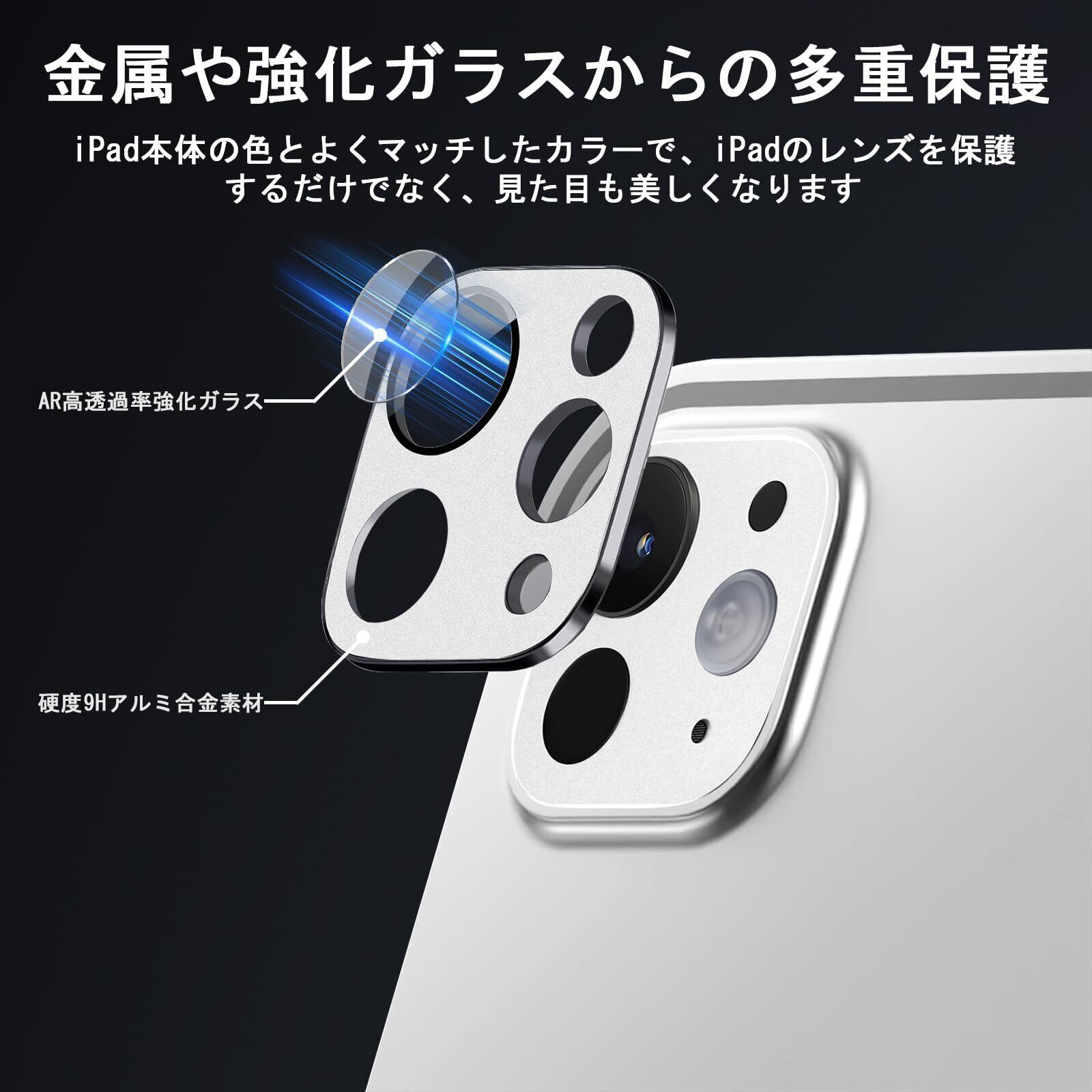 [NicMool] iPad カメラフィルム For iPad Pro 13/iPad Pro 11 インチ M4 2024年 専用 For iPad Pro 12.9/Pro 11インチ (2022/2021/2020) 対応 カメラ保護フィルム アルミ合金製+AR高透過率強化ガラス 硬度9H 耐衝撃 傷防止 HDクラリティ 3Dフルカバー for iPad Pro 13/11 インチ (シルバー) | hananoki