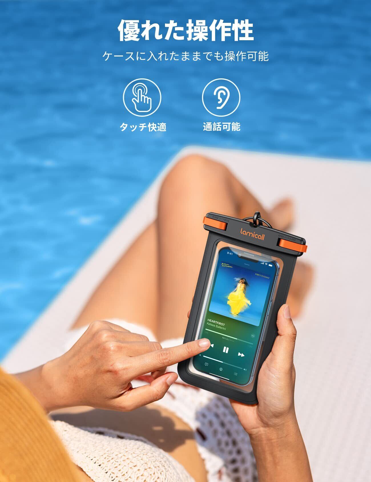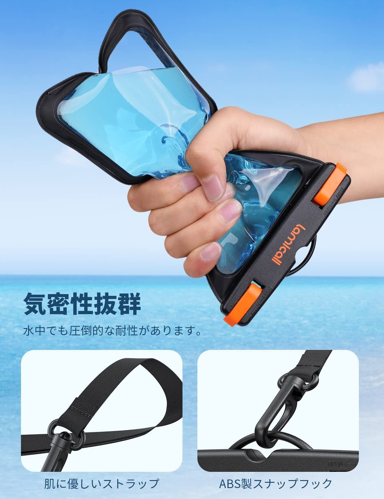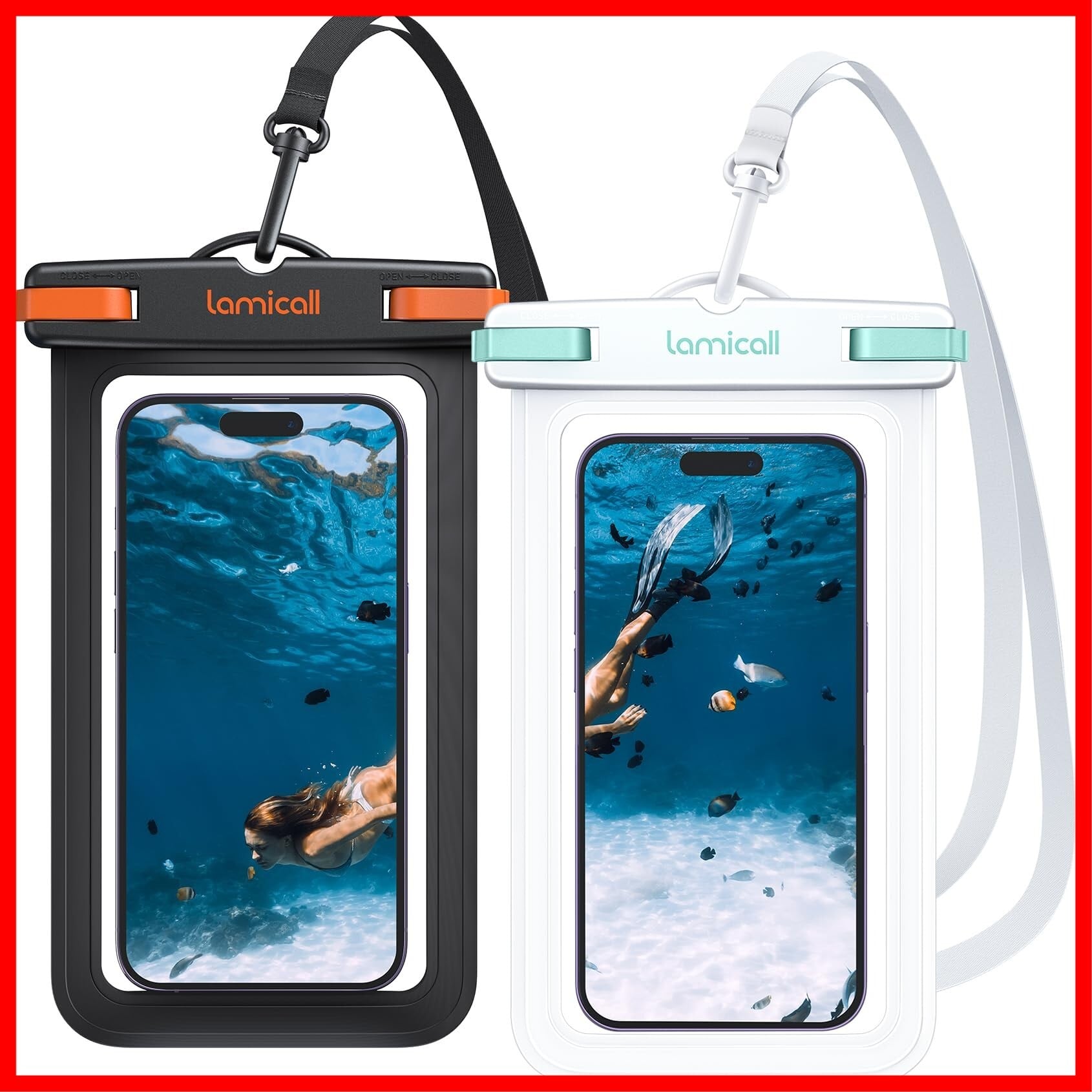 2個セット スマホ 防水 ケース IPX8 Lamicall : 海 プール お風呂 すまほ ぼうすい カバー 水中 撮影 顔認証 通話 スマフォ アイホン 携帯 けいたい 首かけ 温泉 海水浴 水泳 潜水 iPhone 16e 16 15 14 plus pro promax 13 mini 12 プロ マックス se Huawei Xperia android に対応 黒&白
