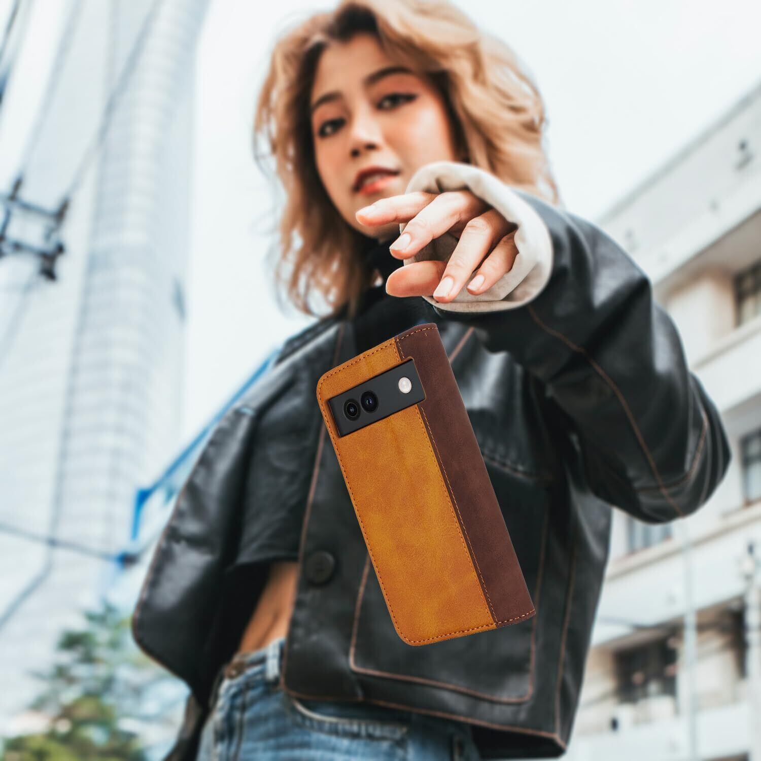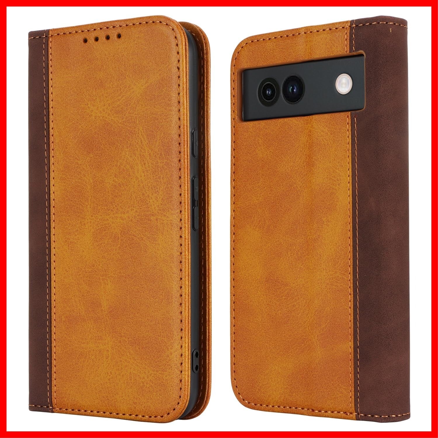 Havaya Google Pixel 8a ケース pixel 8a ケース ピクセル8a ケース グーグル スマホケース docomo 手帳型 au 耐衝撃 カバー SoftBank マグネット式 カード収納 スタンド機能 レザー -イエロー+ブラウン